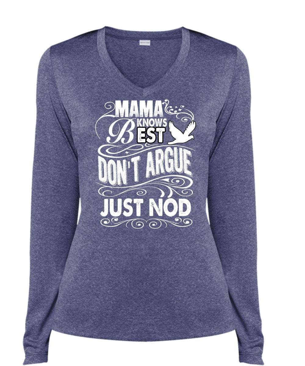Mama Knows Best Don't Argue Just Nod T Shirt, Being A Mom T Shirt, Cool Shirt (Ladies LS Heather V-Neck)