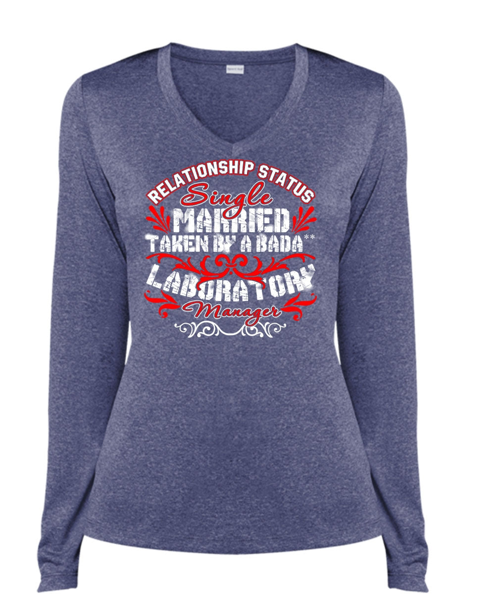 Married Taken By A Laboratory Manager T Shirt, Relationship Status T Shirt, Cool Shirt (Ladies LS Heather V-Neck)