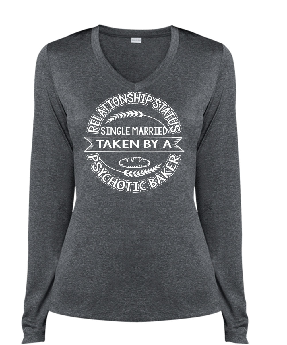 Married Taken By A Psychotic Baker T Shirt, Being A Baker T Shirt, Cool Shirt (Ladies LS Heather V-Neck)