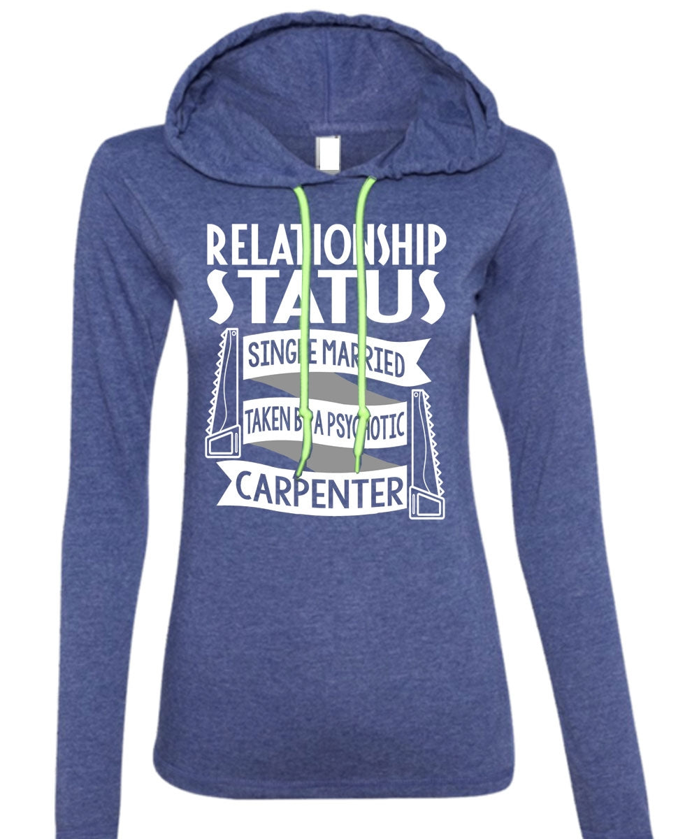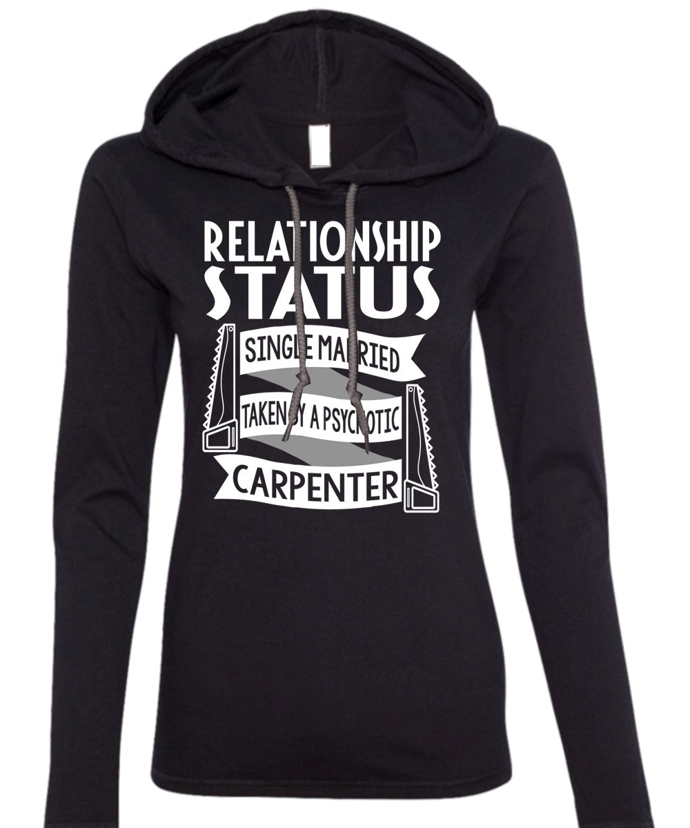 Married Taken By A Psychotic Carpenter T Shirt, Being A Carpenter T Shirt (Anvil Ladies Ringspun Hooded)