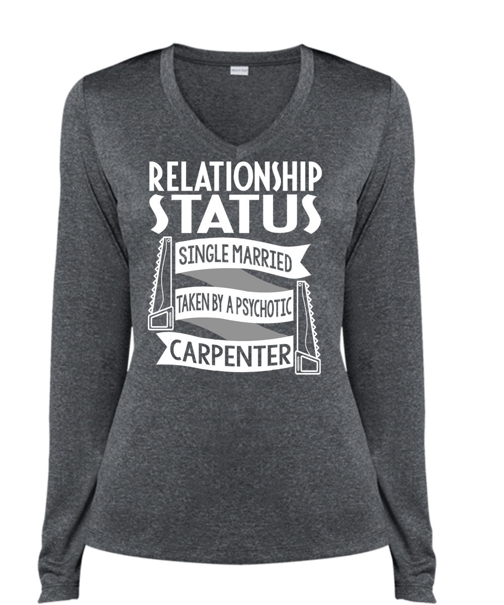 Married Taken By A Psychotic Carpenter T Shirt, Being A Carpenter T Shirt, Cool Shirt (Ladies LS Heather V-Neck)