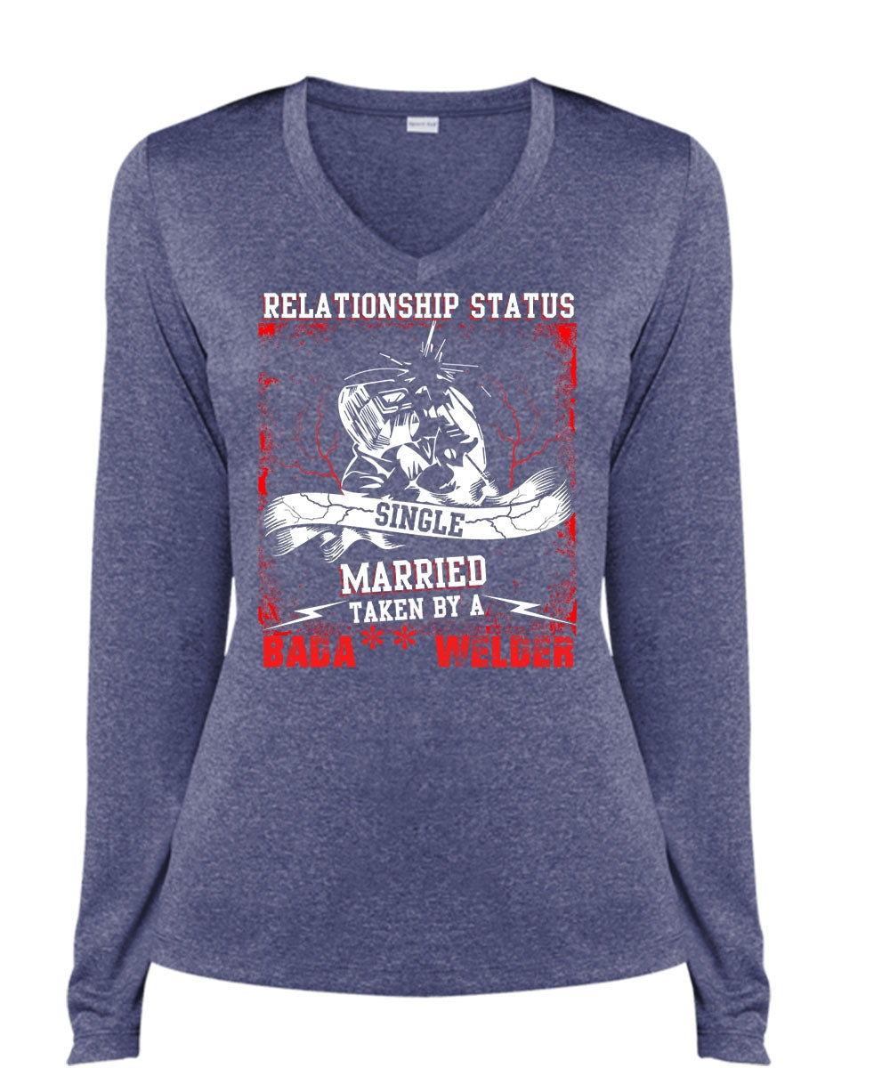 Married Taken By A Welder T Shirt, Realtionship Status T Shirt, Cool Shirt (Ladies LS Heather V-Neck)