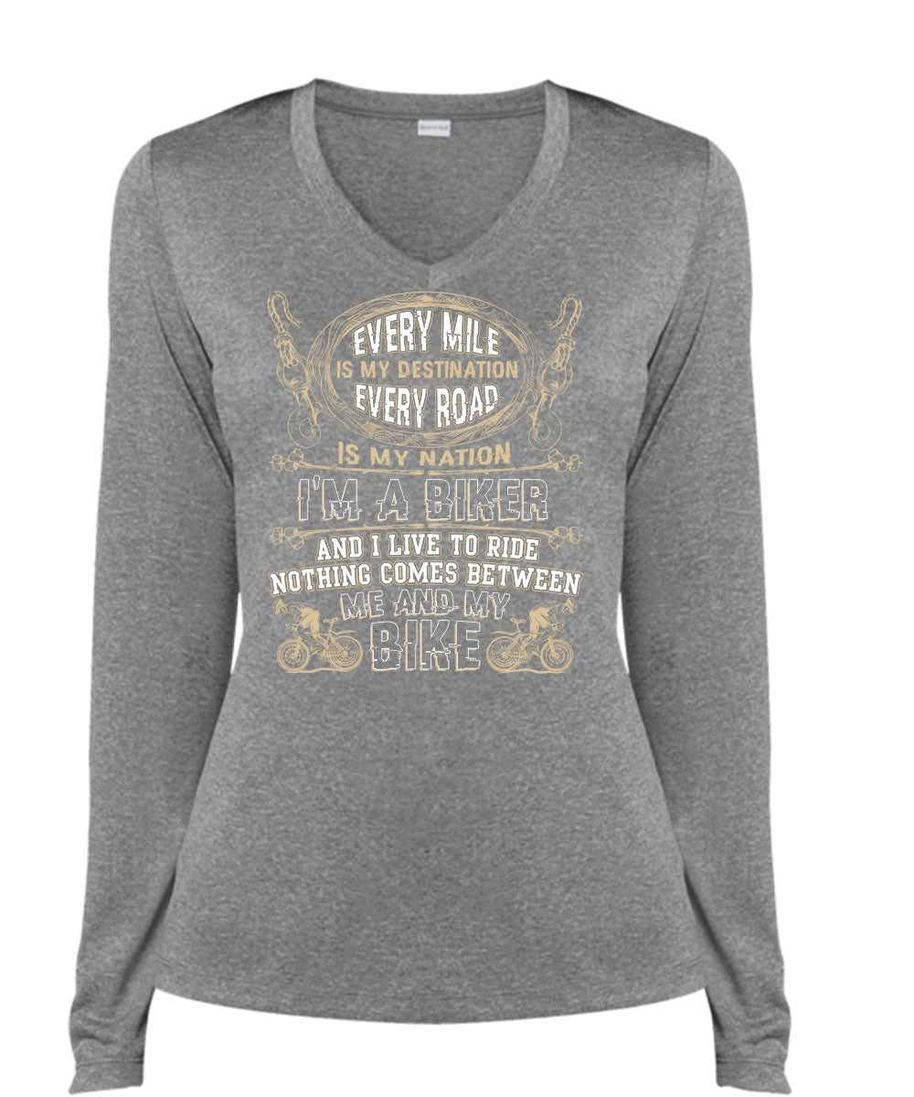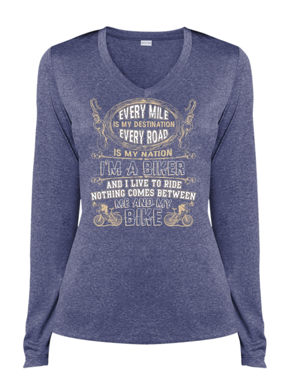 Me And My Bike T Shirt, I'm A Biker T Shirt, Cool Shirt (Ladies LS Heather V-Neck)