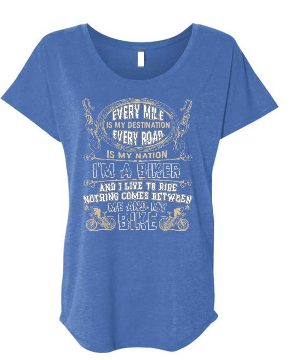 Me And My Bike T Shirt, I'm A Biker T Shirt, Cool Shirt (Ladies' Triblend Dolman Sleeve)