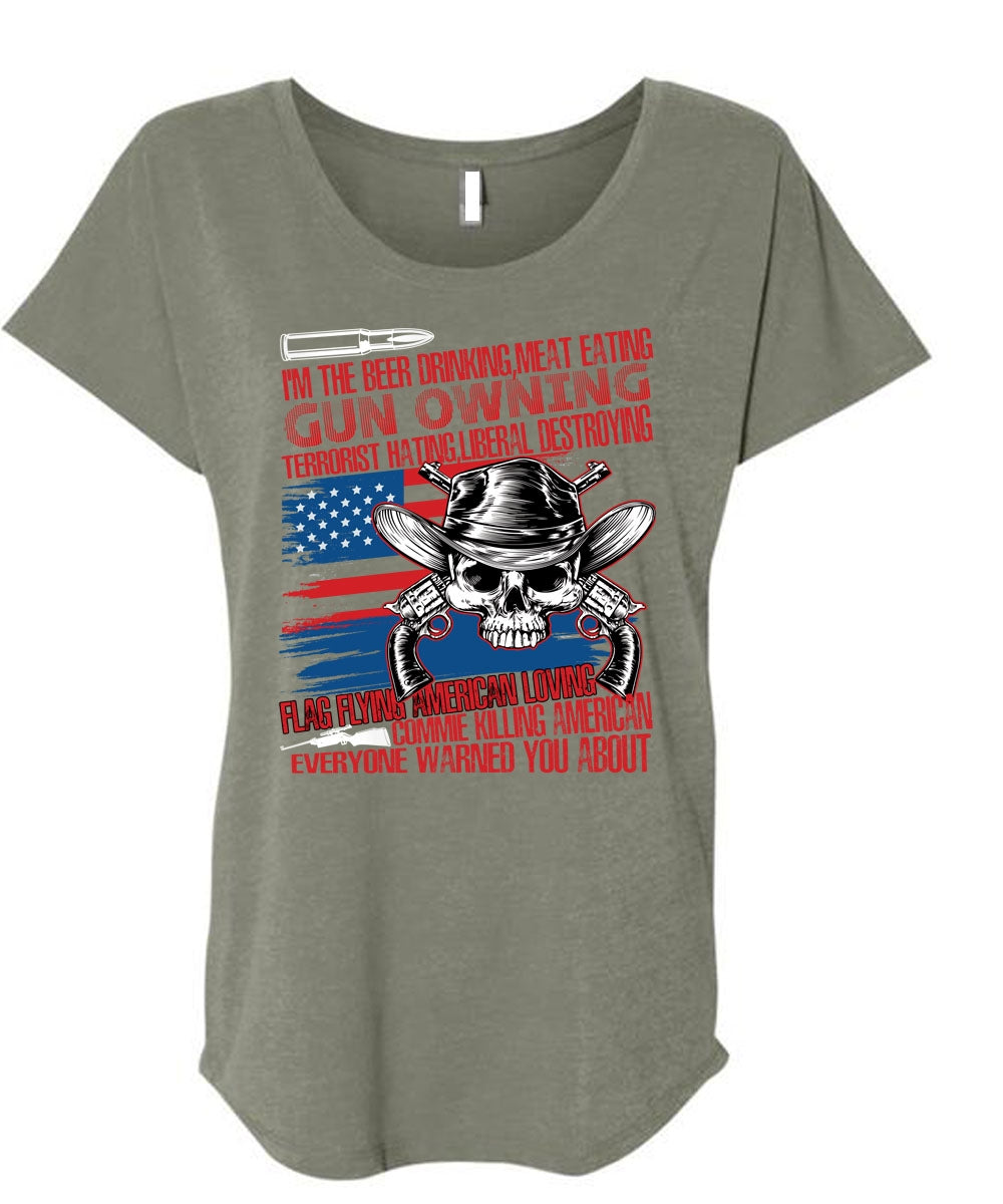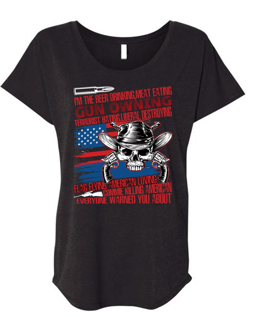 Meat Eating Gun Owning T Shirt, Flag Flying T Shirt, Cool Shirt (Ladies' Triblend Dolman Sleeve)