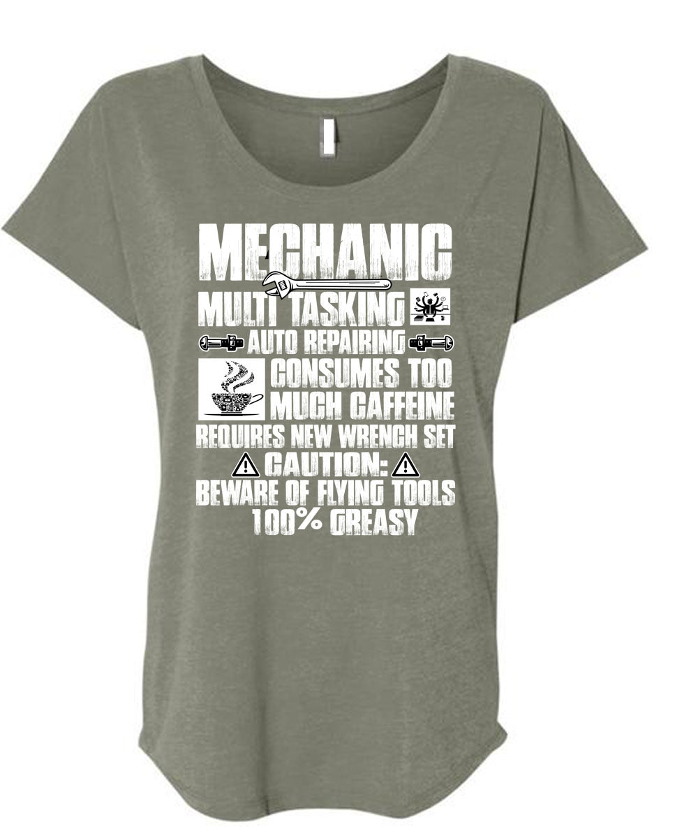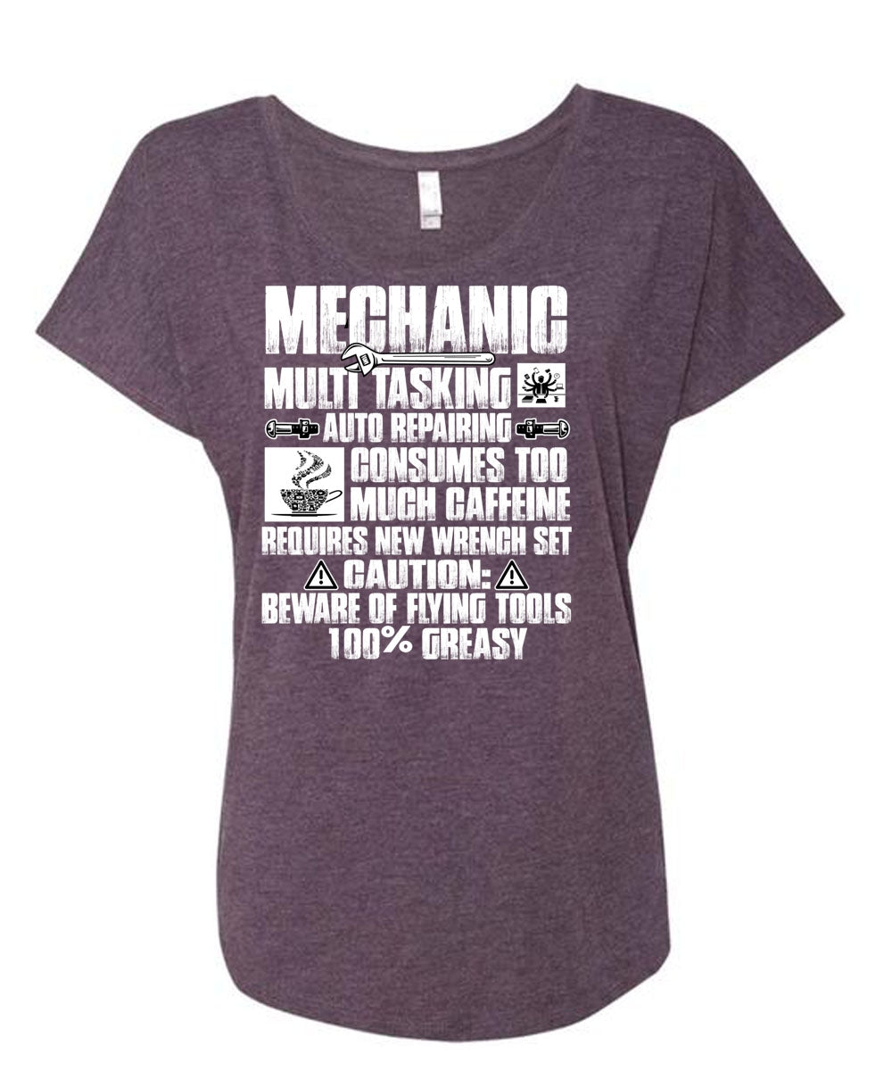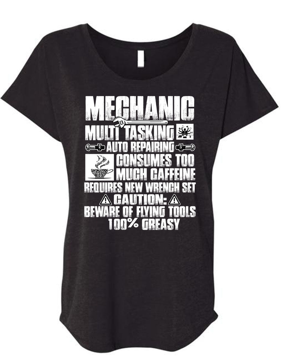 Mechanic Multitasking T Shirt, Much Caffeine T Shirt, Cool Shirt (Ladies' Triblend Dolman Sleeve)