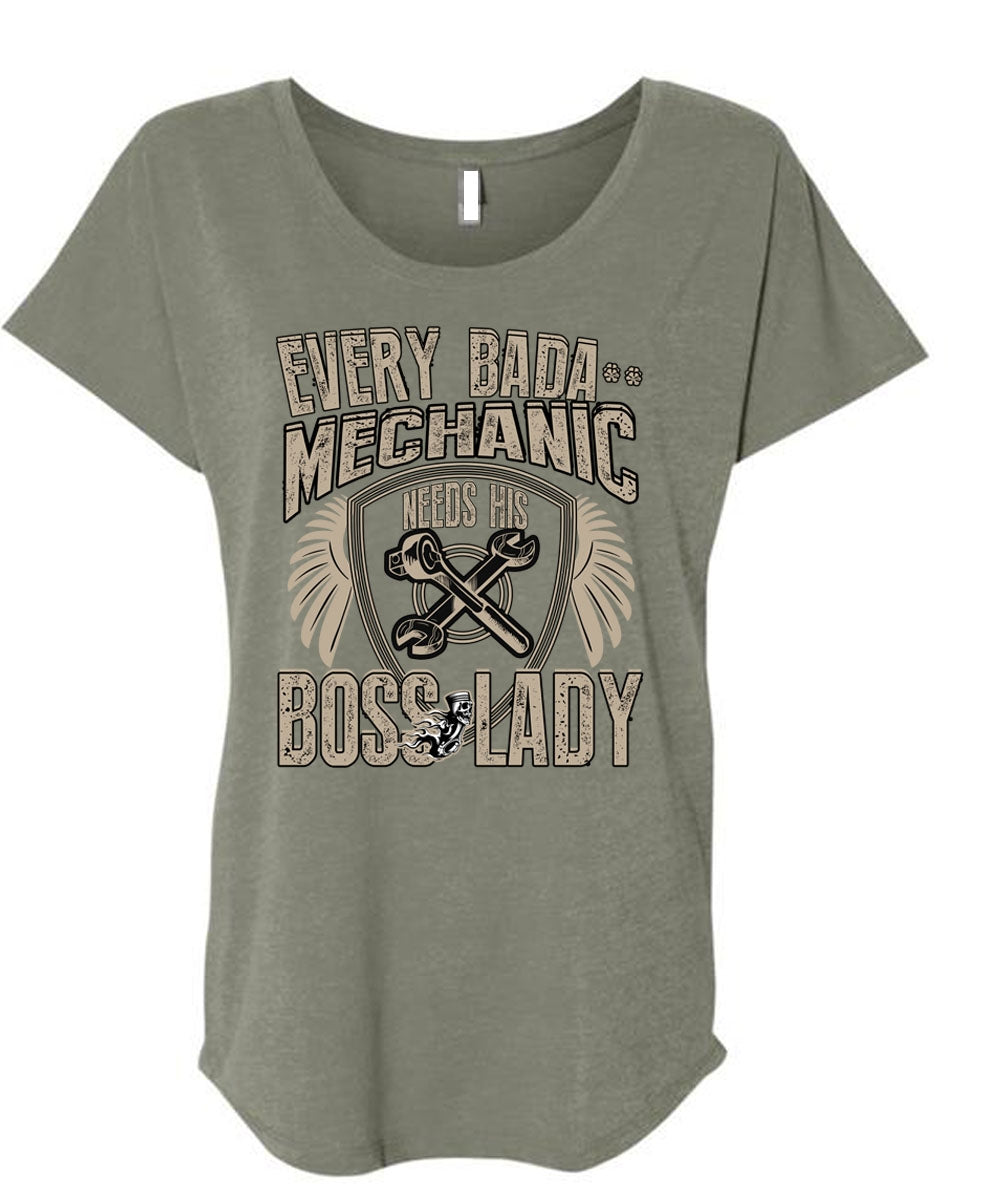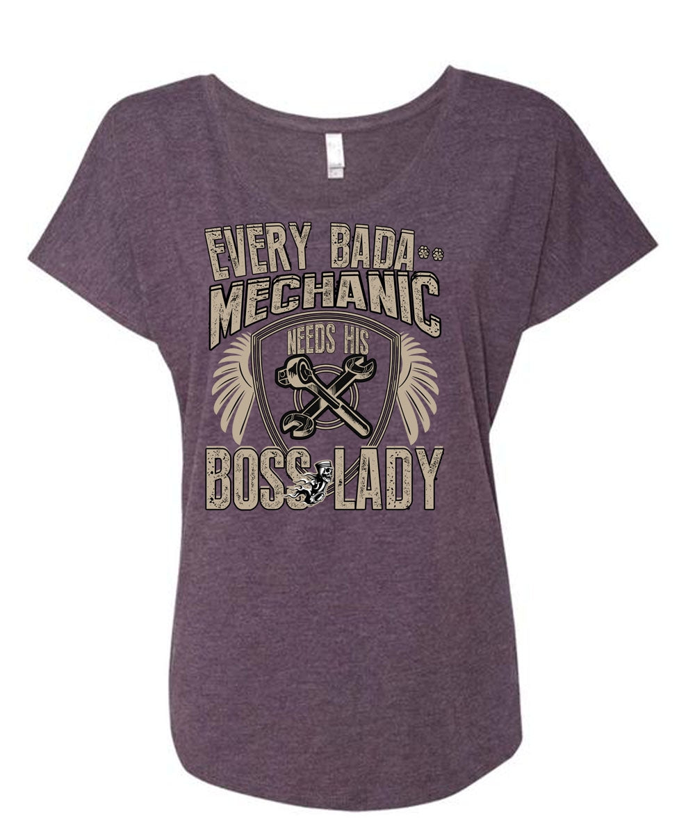 Mechanic Needs His Boss Lady T Shirt, Being A Mechanic T Shirt, Cool Shirt (Ladies' Triblend Dolman Sleeve)