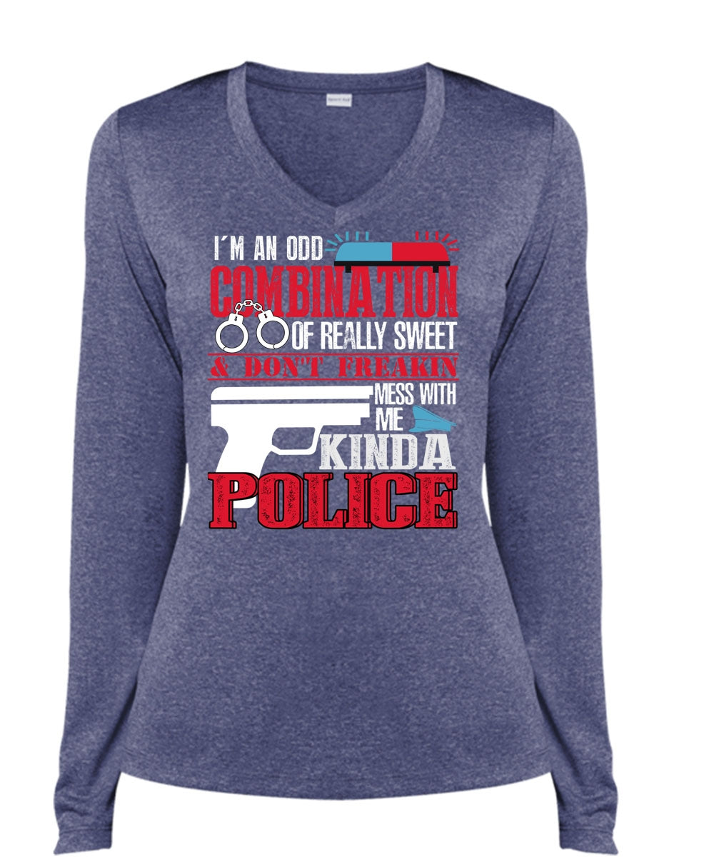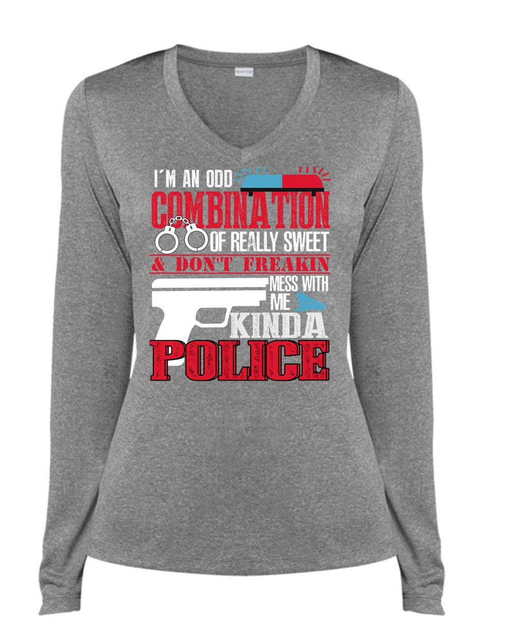 Mess With Me Kinda Police T Shirt, I'm An Odd Combination T Shirt, Cool Shirt (Ladies LS Heather V-Neck)