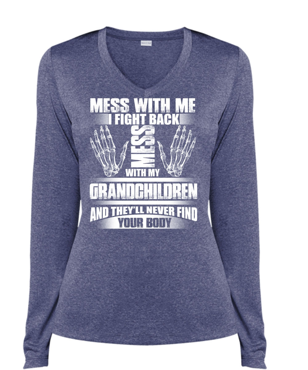 Mess With My Grandchildren T Shirt, Find Your Body T Shirt, Cool Shirt (Ladies LS Heather V-Neck)