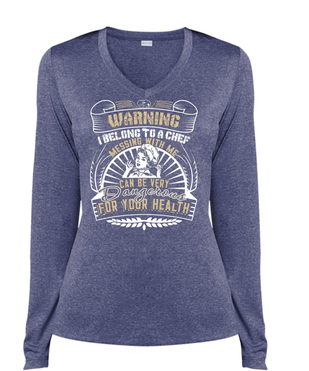 Messing With Me T Shirt, Dangerous For Your Health T Shirt, Cool Shirt (Ladies LS Heather V-Neck)
