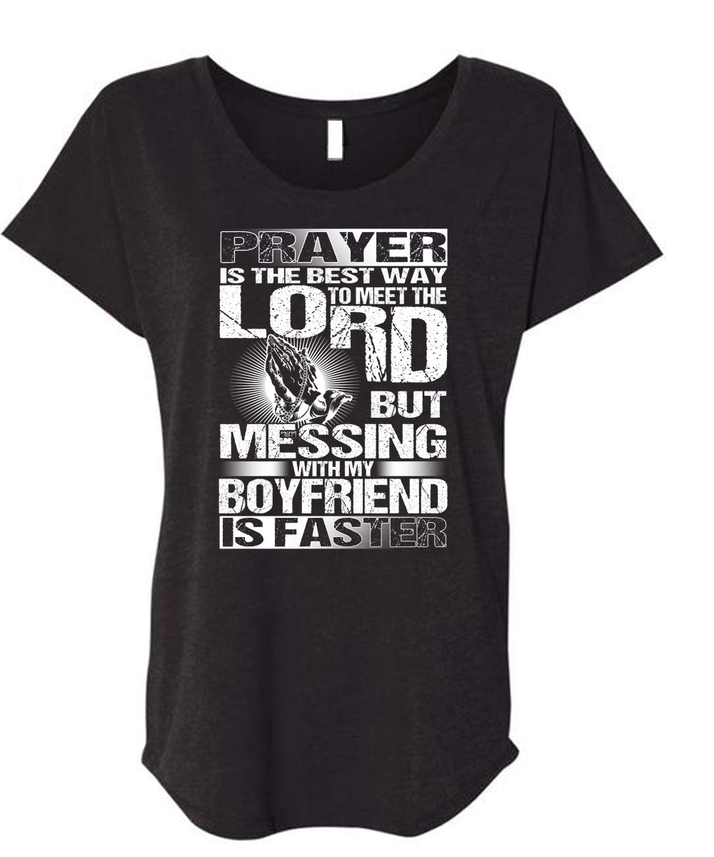 Messing With My Boyfriend Is Faster T Shirt, Meet The Lord T Shirt, Cool Shirt (Ladies' Triblend Dolman Sleeve)