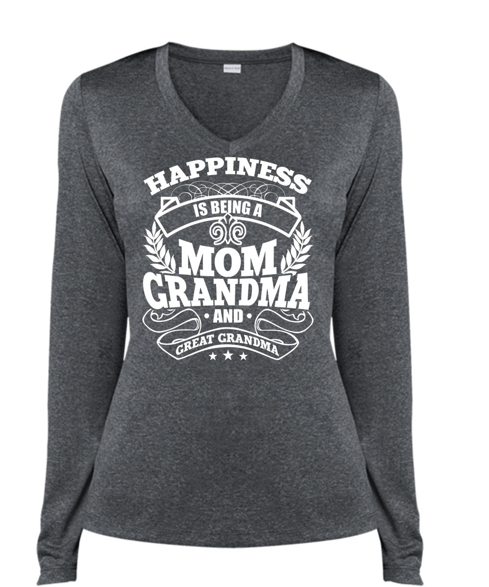 Mom Grandma And Great Grandma T Shirt, Being A Nana T Shirt, Cool Shirt (Ladies LS Heather V-Neck)