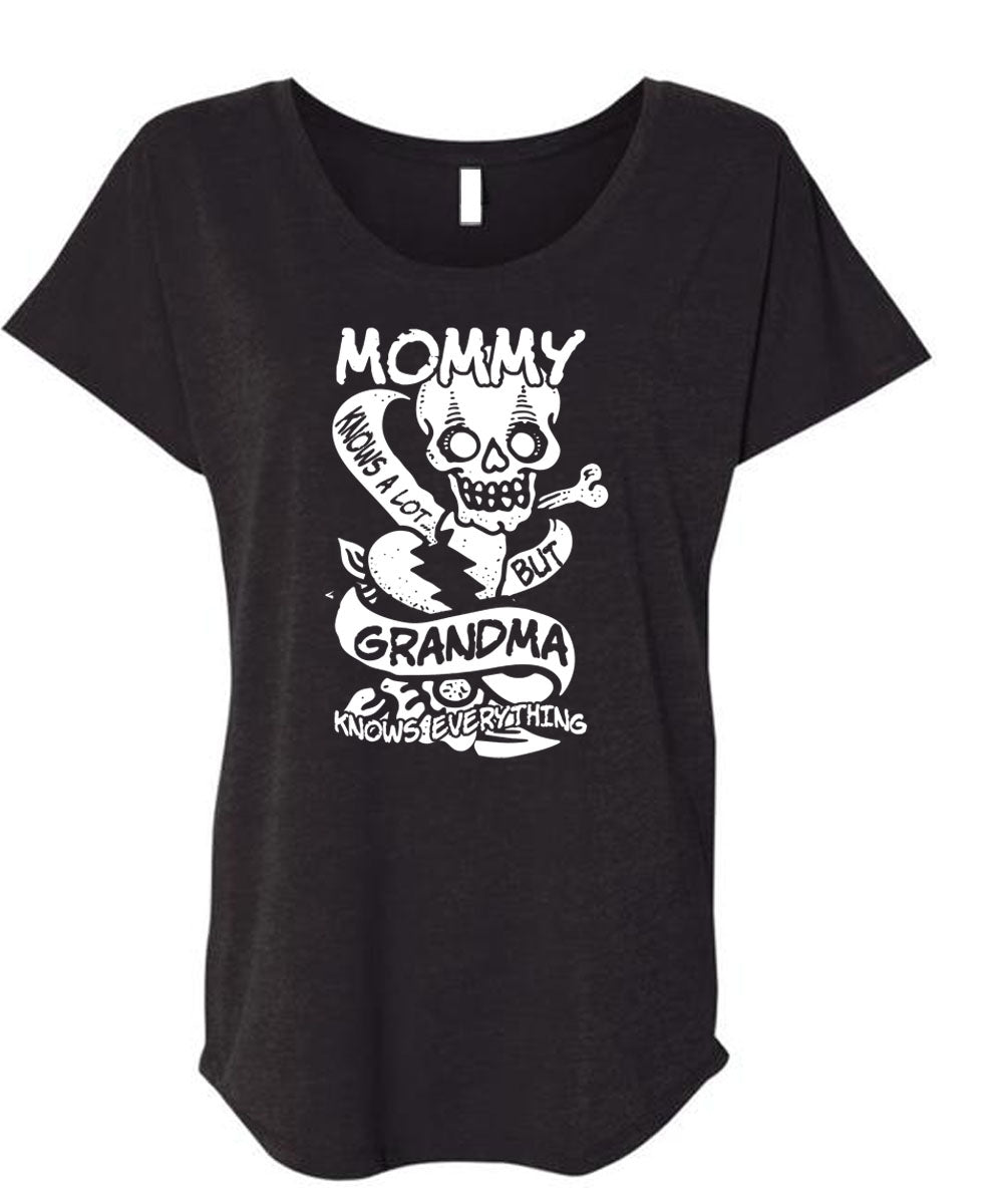 Mommy Knows A Lot But Grandma T Shirt, Being A Mom T Shirt, Cool Shirt (Ladies' Triblend Dolman Sleeve)