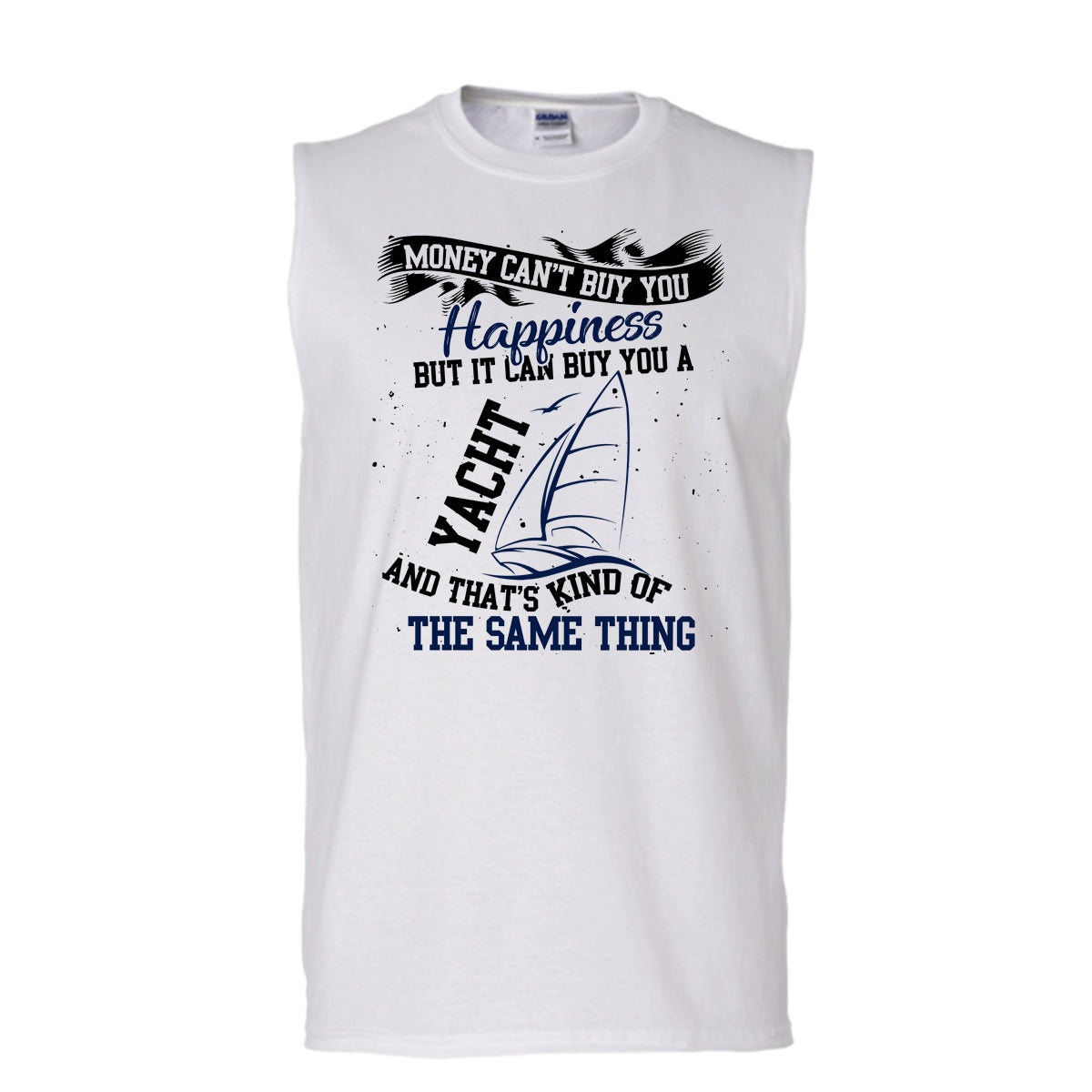 Money Can't Buy Happiness T Shirt, Coolest Yacht T Shirt, Awesome t-shirts (Men's Cotton Sleeveless)