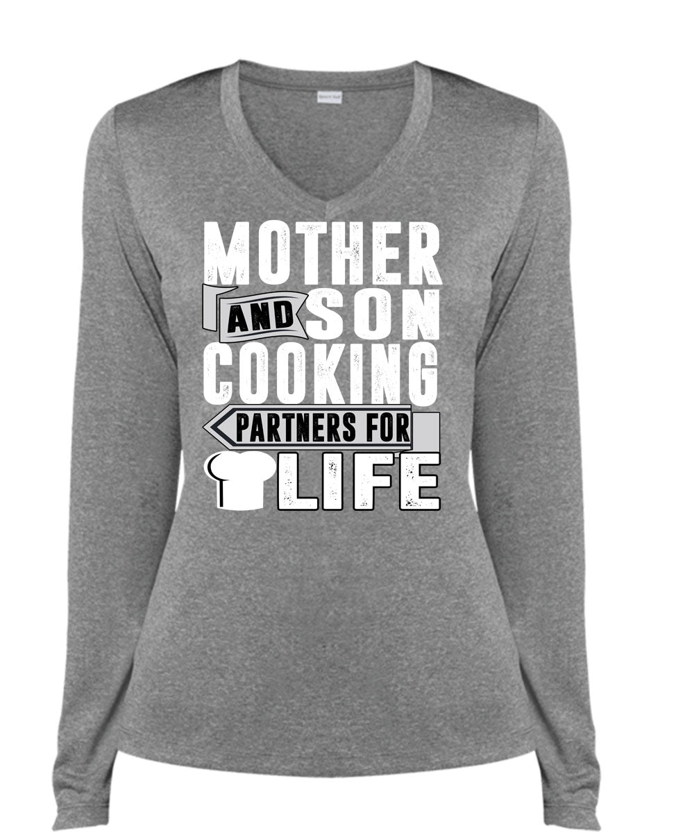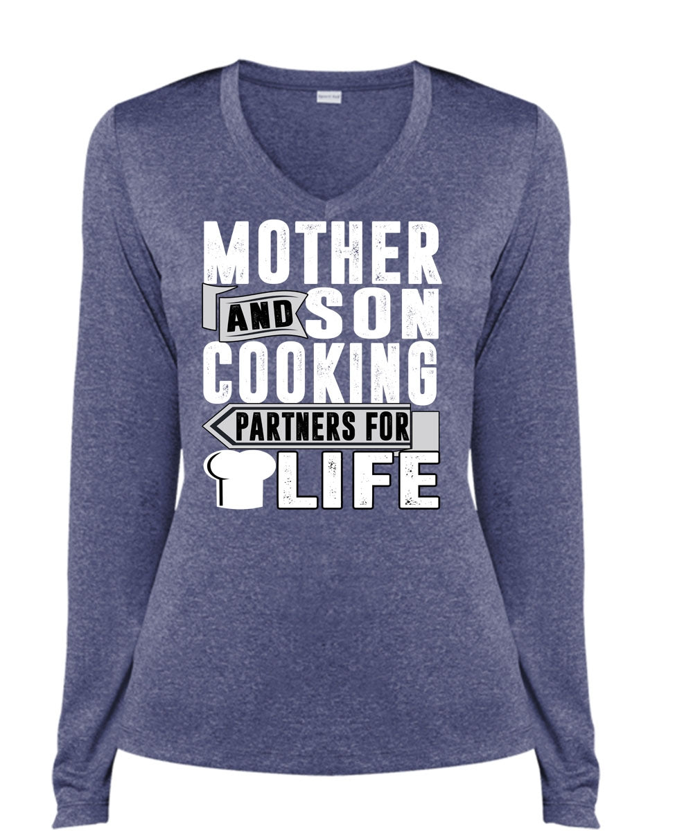 Mother And Son Cooking T Shirt, Partners For Life T Shirt, Cool Shirt (Ladies LS Heather V-Neck)
