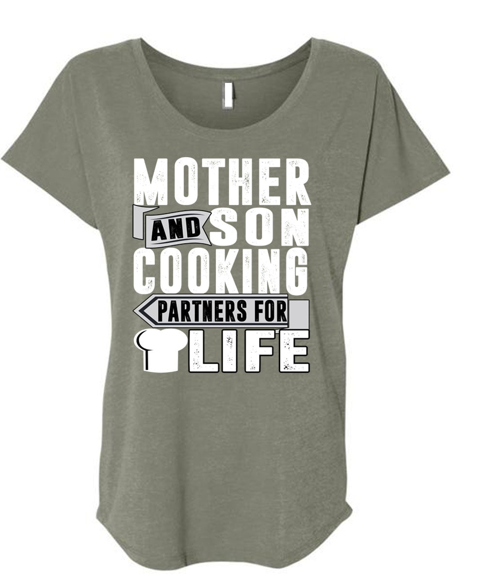 Mother And Son Cooking T Shirt, Partners For Life T Shirt, Cool Shirt (Ladies' Triblend Dolman Sleeve)