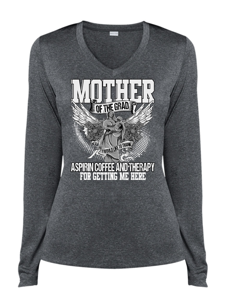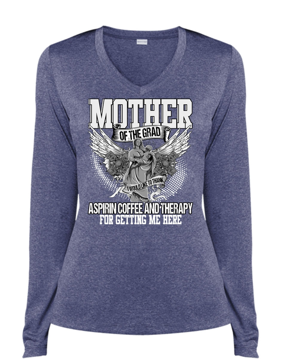 Mother Of The Grad T Shirt, Coffee And Therapy T Shirt, Cool Shirt (Ladies LS Heather V-Neck)