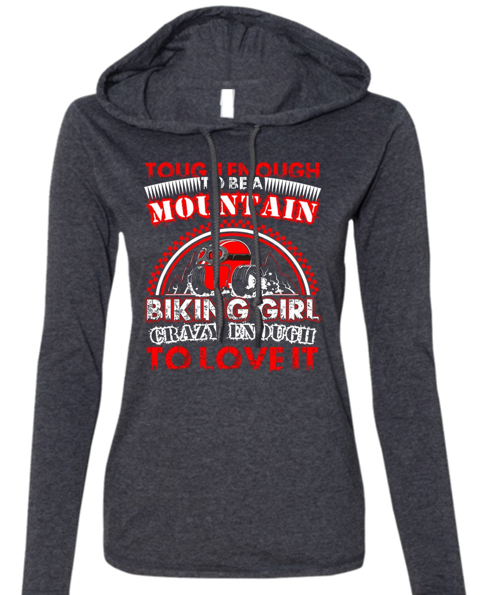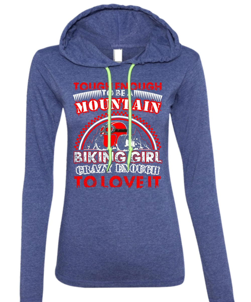 Mountain Biking Girl T Shirt, Crazy Enough To Love It T Shirt (Anvil Ladies Ringspun Hooded)