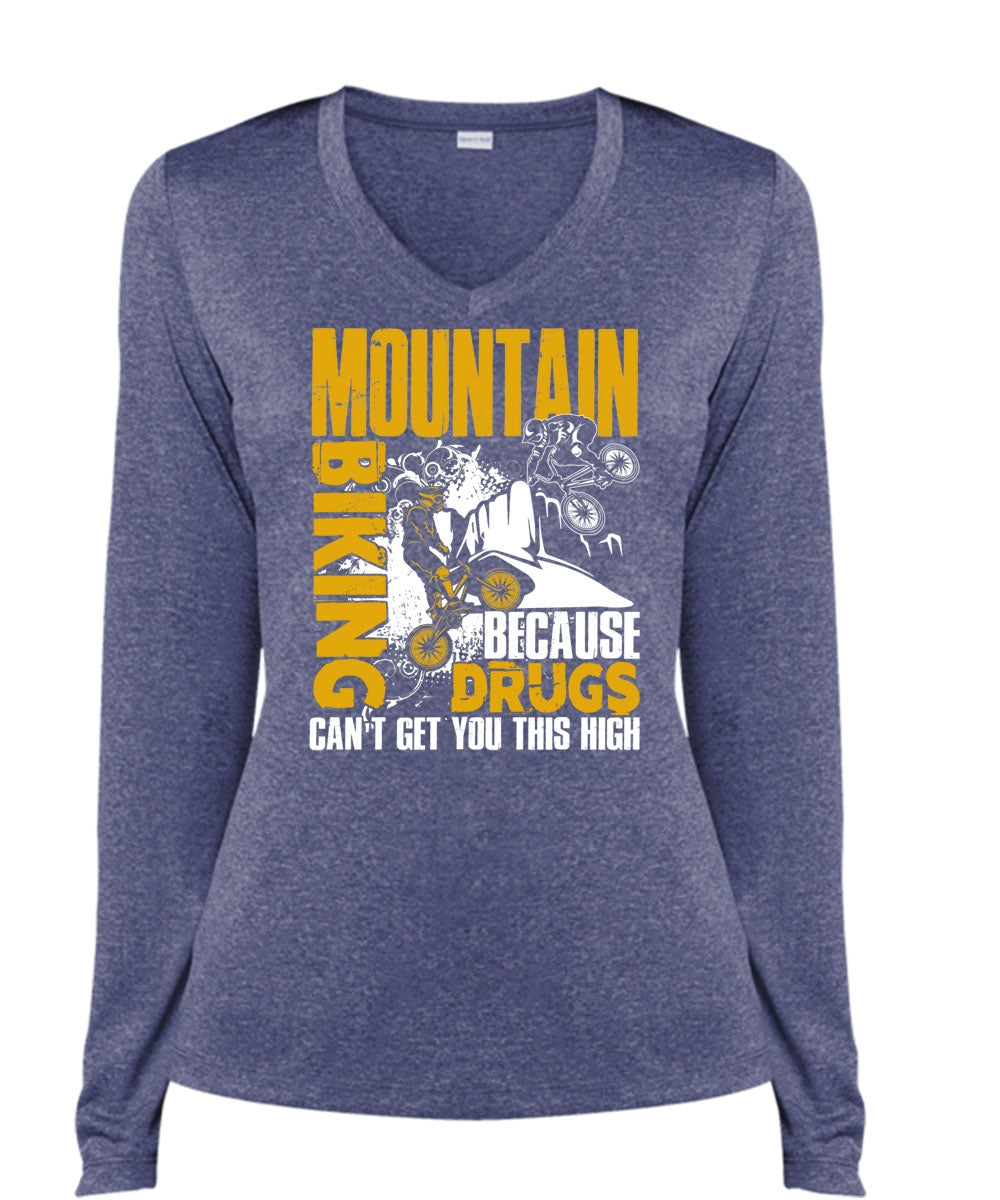 Mountain Biking T Shirt, Being A Biker T Shirt, Cool Shirt (Ladies LS Heather V-Neck)