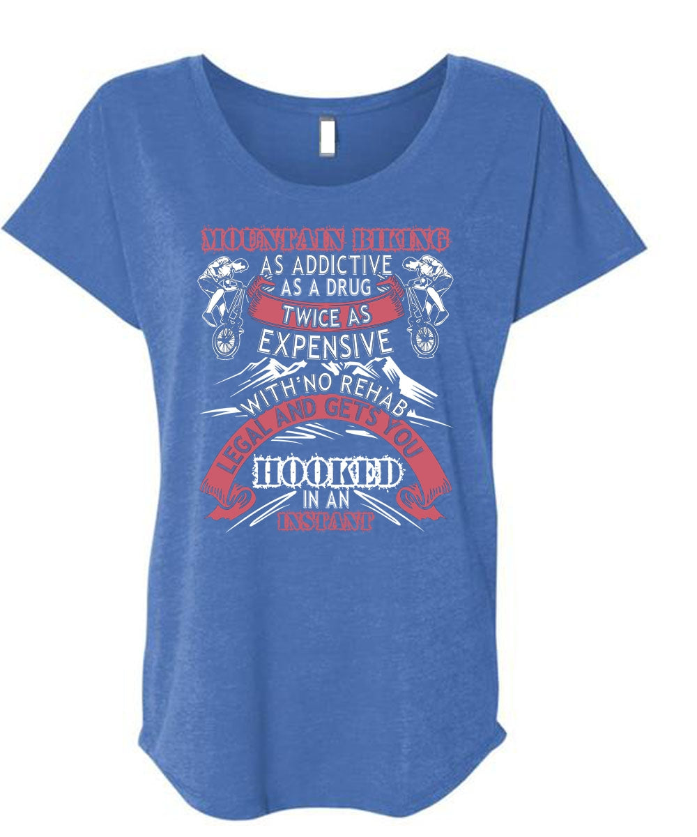 Mountain Biking T Shirt, Gets You Hooked T Shirt, Cool Shirt (Ladies' Triblend Dolman Sleeve)