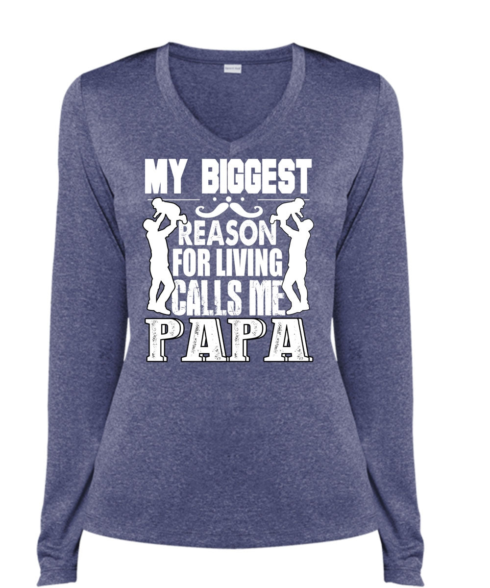 My Biggest Reason T Shirt, Living Calls Me Papa T Shirt, Cool Shirt (Ladies LS Heather V-Neck)