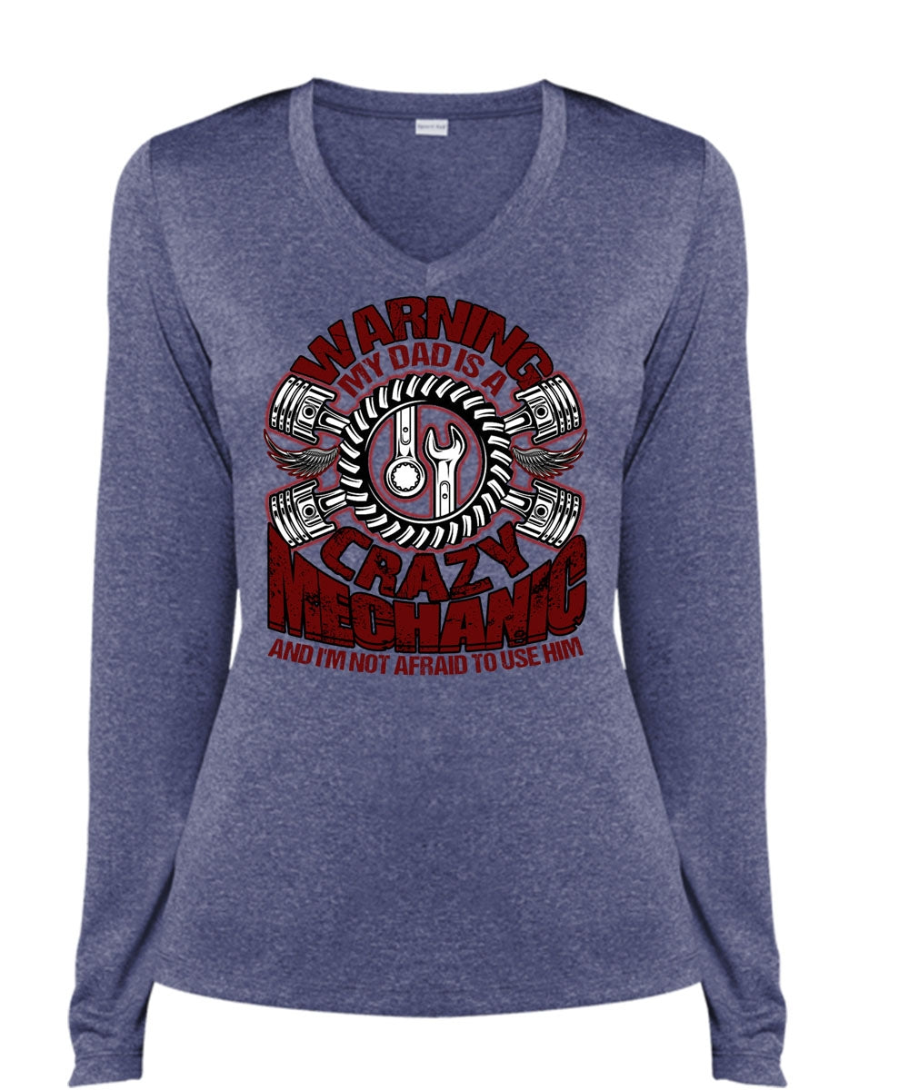 My Dad Is A Crazy Mechanic T Shirt, Being A Mechanic T Shirt, Cool Shirt (Ladies LS Heather V-Neck)