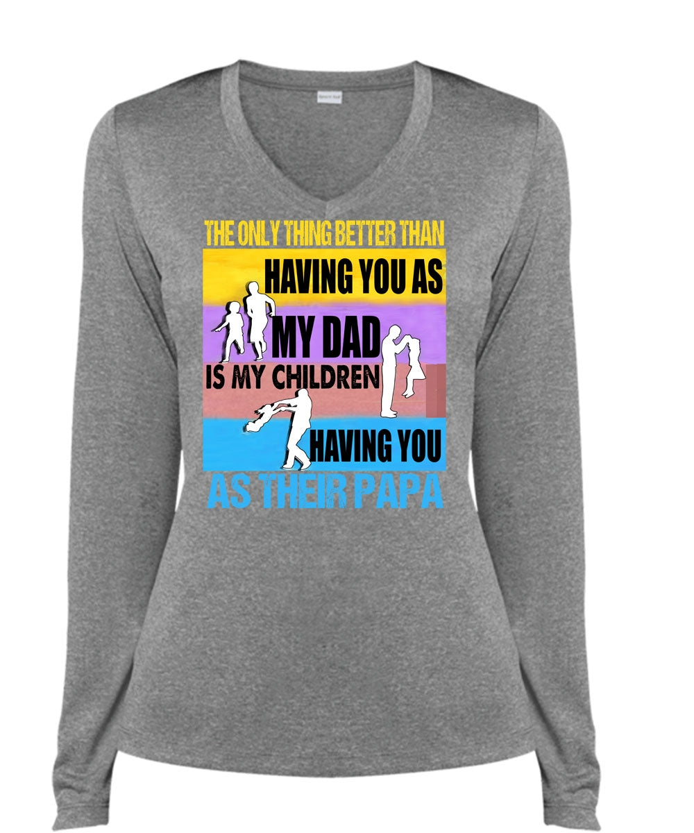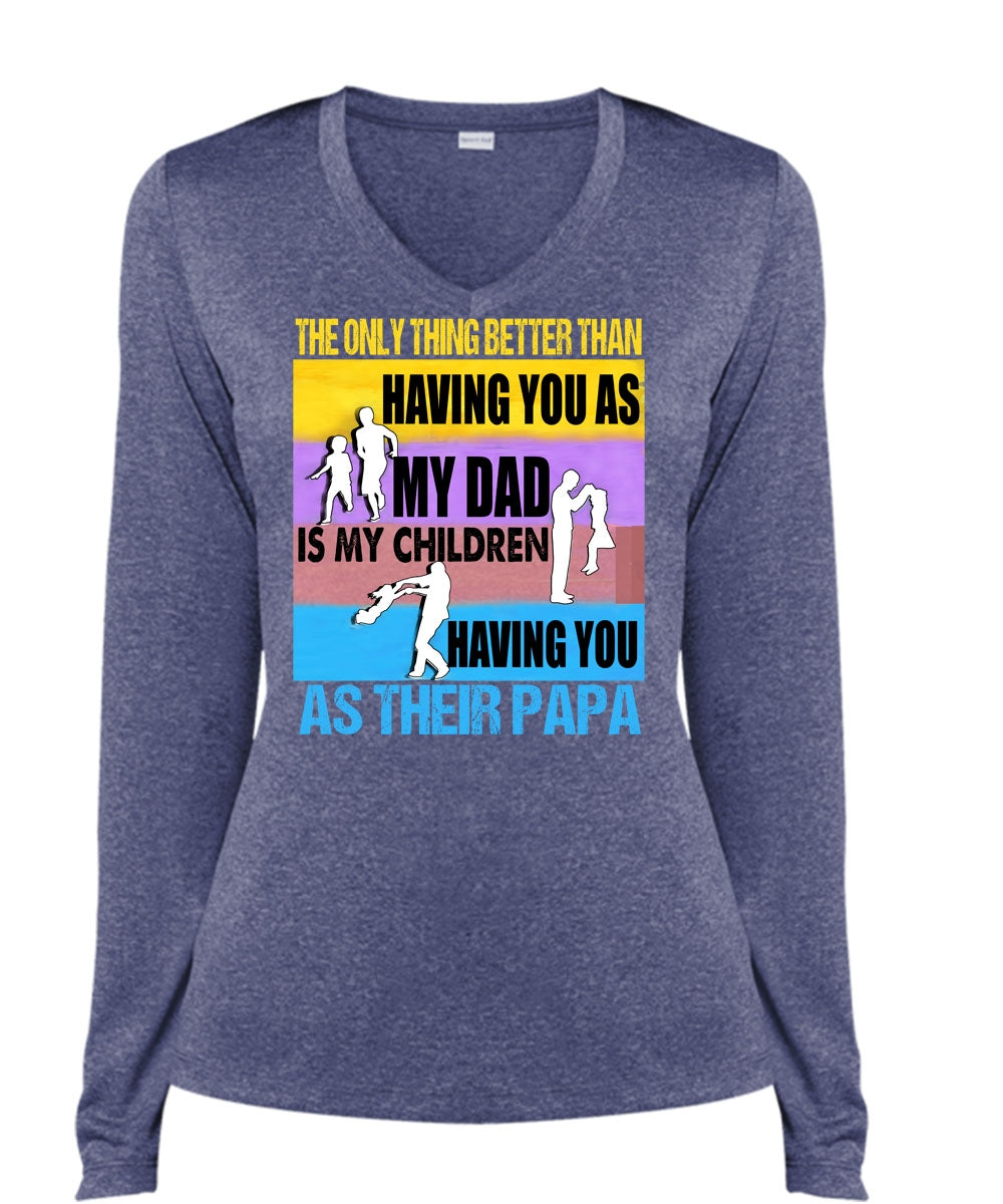 My Dad Is My Children T Shirt, You As Their Papa T Shirt, Cool Shirt (Ladies LS Heather V-Neck)