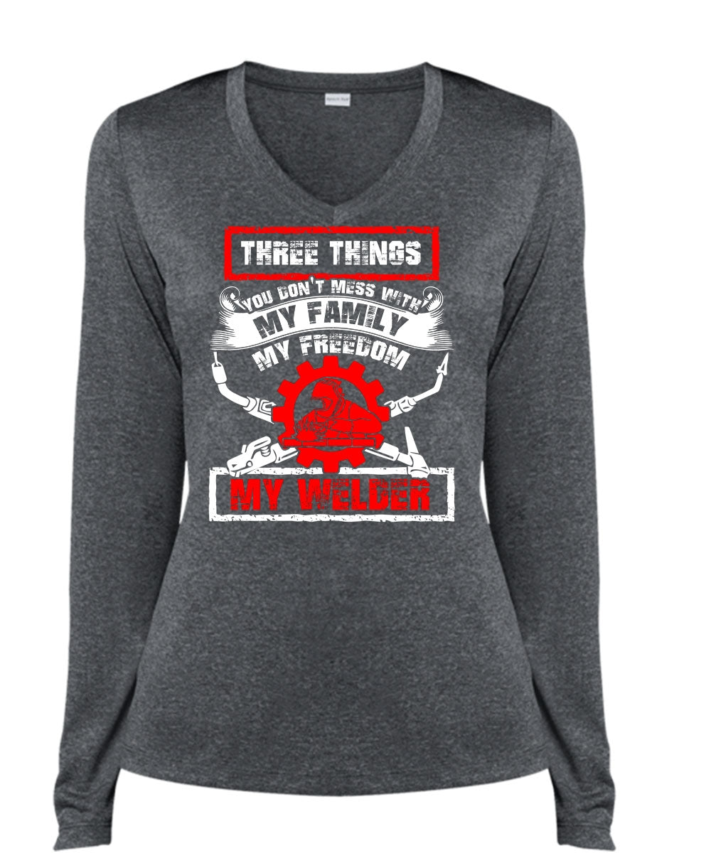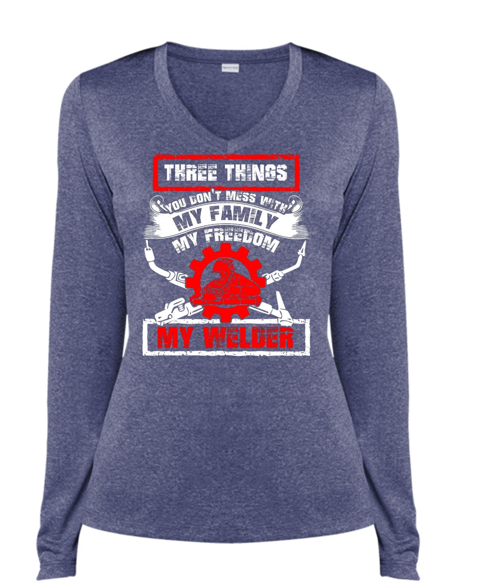 My Family My Freedom My Welder T Shirt, Being A Welder T Shirt, Cool Shirt (Ladies LS Heather V-Neck)