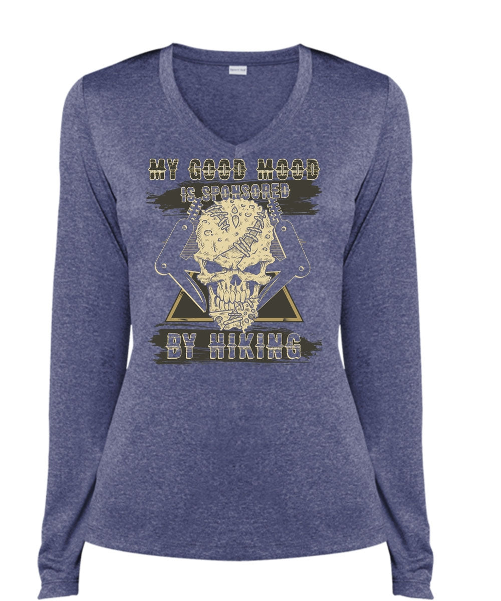 My Good Mood Is Sponsored By Hiking T Shirt, Being A Hiker T Shirt, Cool Shirt (Ladies LS Heather V-Neck)