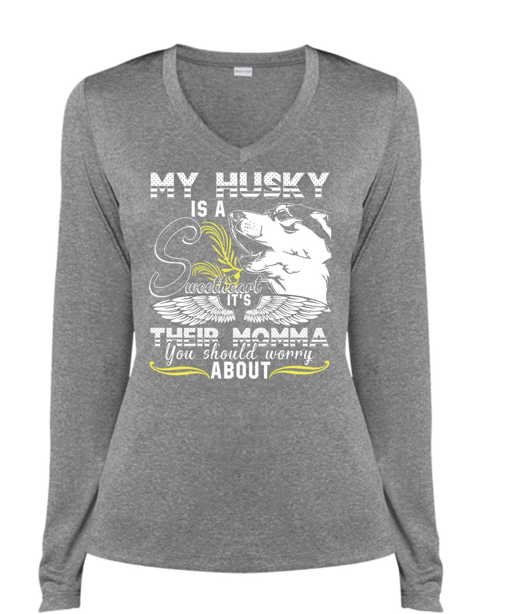 My Husky Is A Sweetheart T Shirt, It's Their Momma T Shirt, Cool Shirt (Ladies LS Heather V-Neck)
