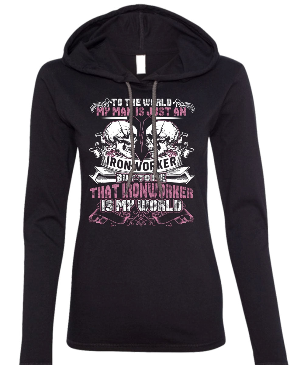 My Man Is Just An Ironworker T Shirt, Being An Ironworker T Shirt (Anvil Ladies Ringspun Hooded)