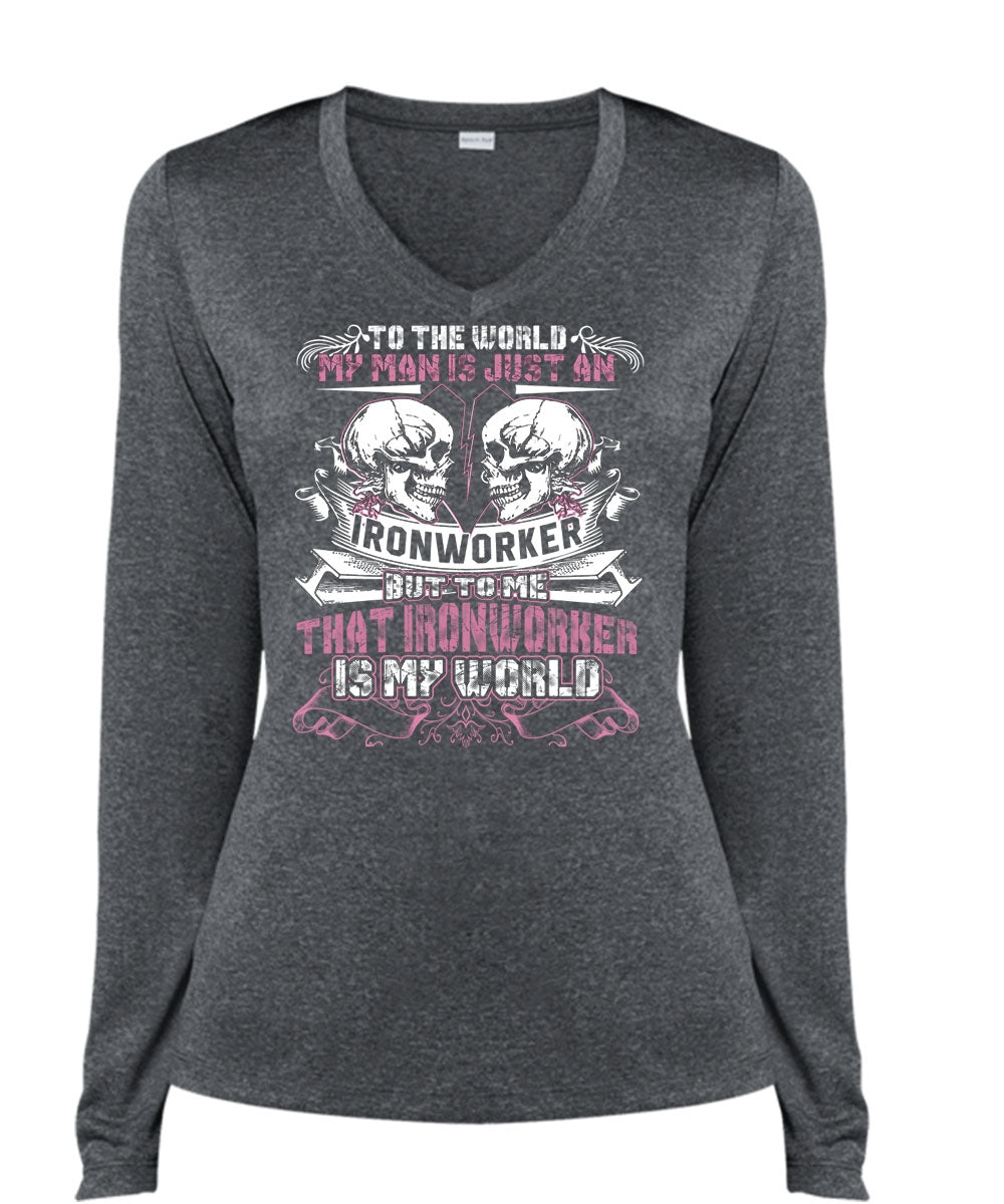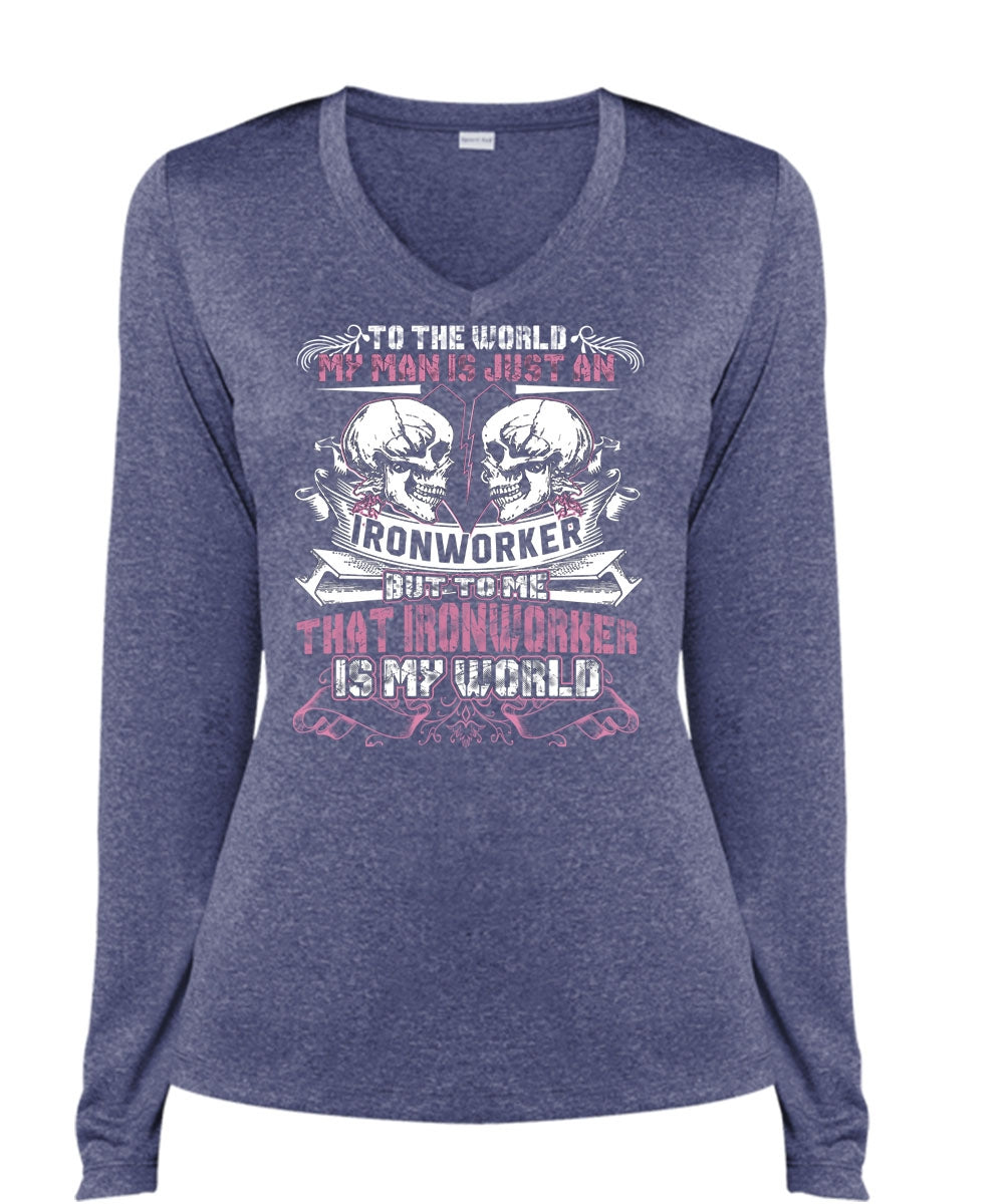 My Man Is Just An Ironworker T Shirt, Being An Ironworker T Shirt, Cool Shirt (Ladies LS Heather V-Neck)