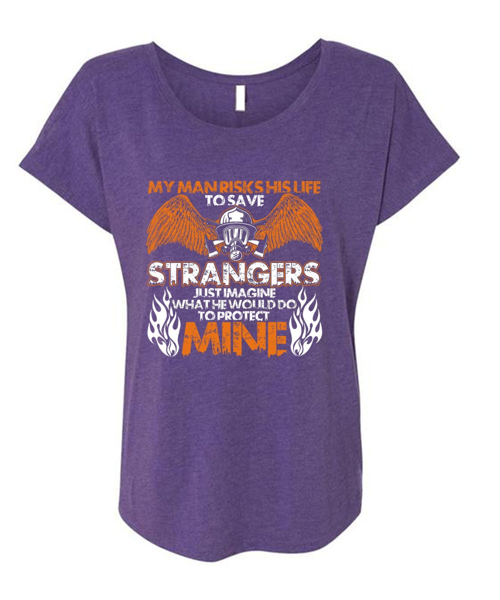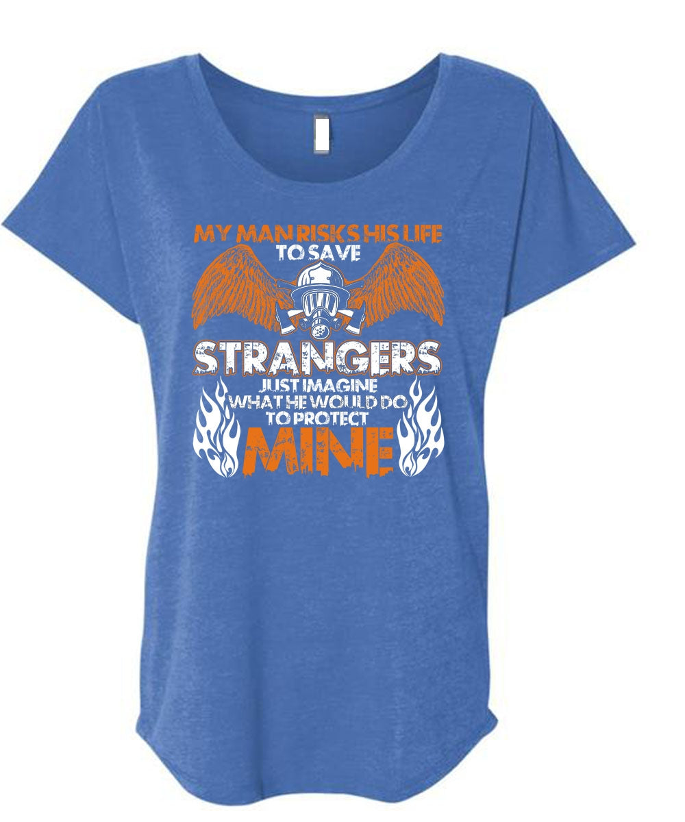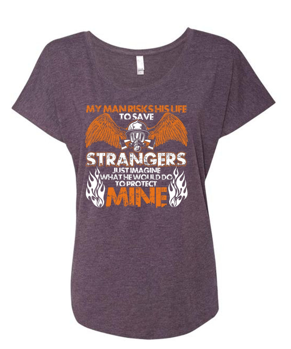 My Man Risks His Life T Shirt, Being A Firefighter T Shirt, Cool Shirt (Ladies' Triblend Dolman Sleeve)