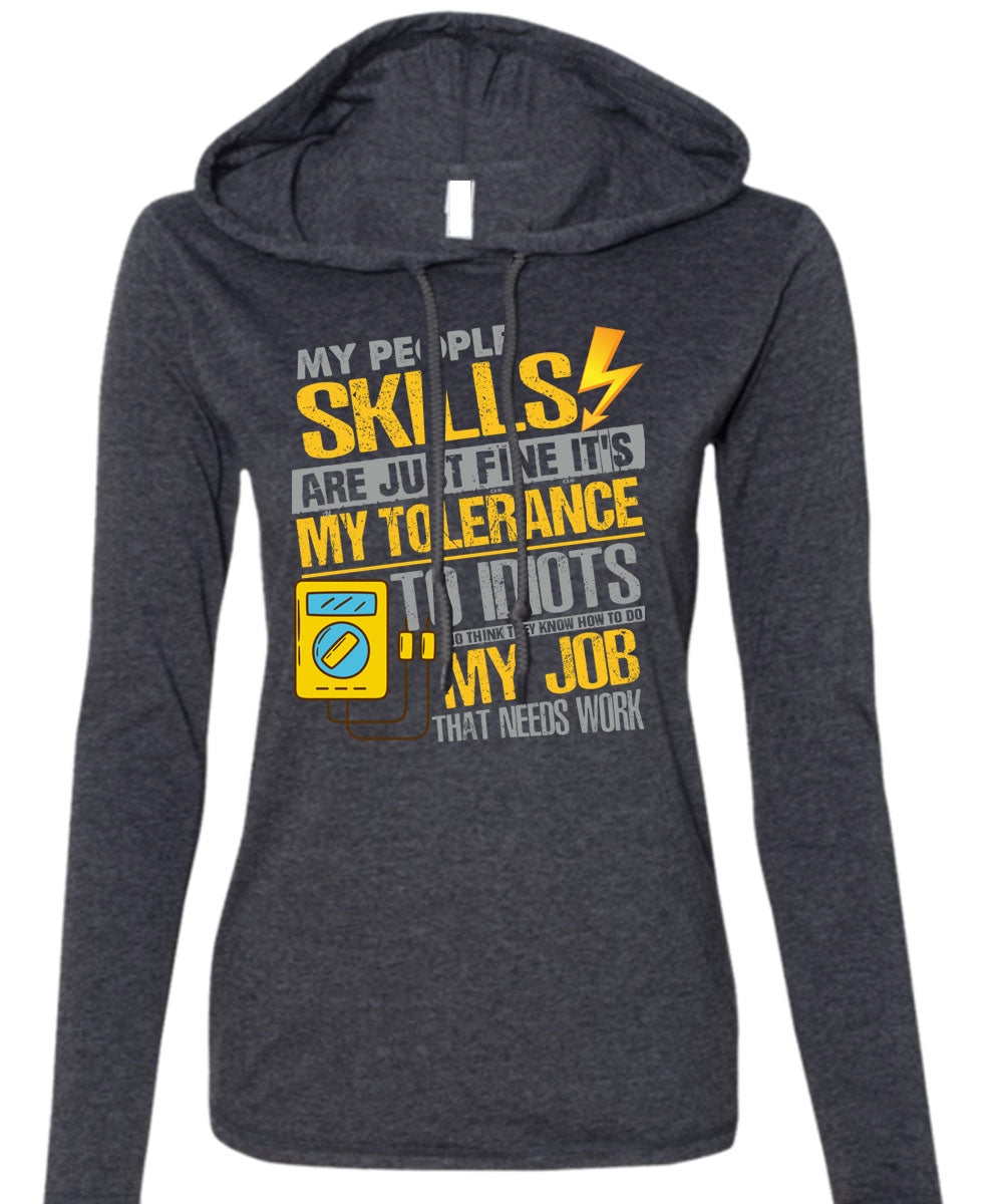 My People Skills Are Just Fine T Shirt, Being An Electrician T Shirt (Anvil Ladies Ringspun Hooded)