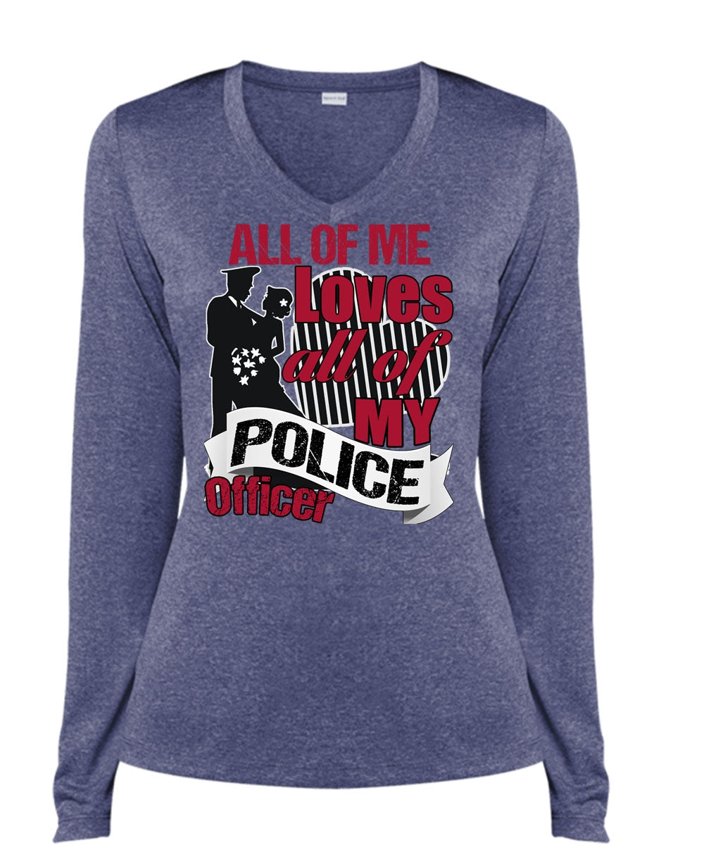 My Police Officer T Shirt, Being A Police T Shirt, Cool Shirt (Ladies LS Heather V-Neck)
