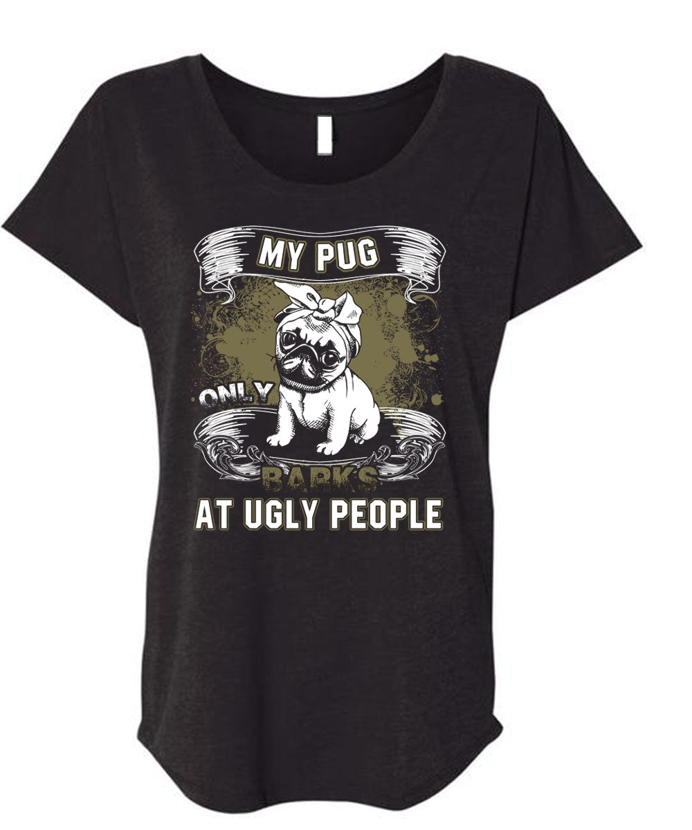 My Pug Only Barks At Ugly People T Shirt, My Pets T Shirt, Cool Shirt (Ladies' Triblend Dolman Sleeve)