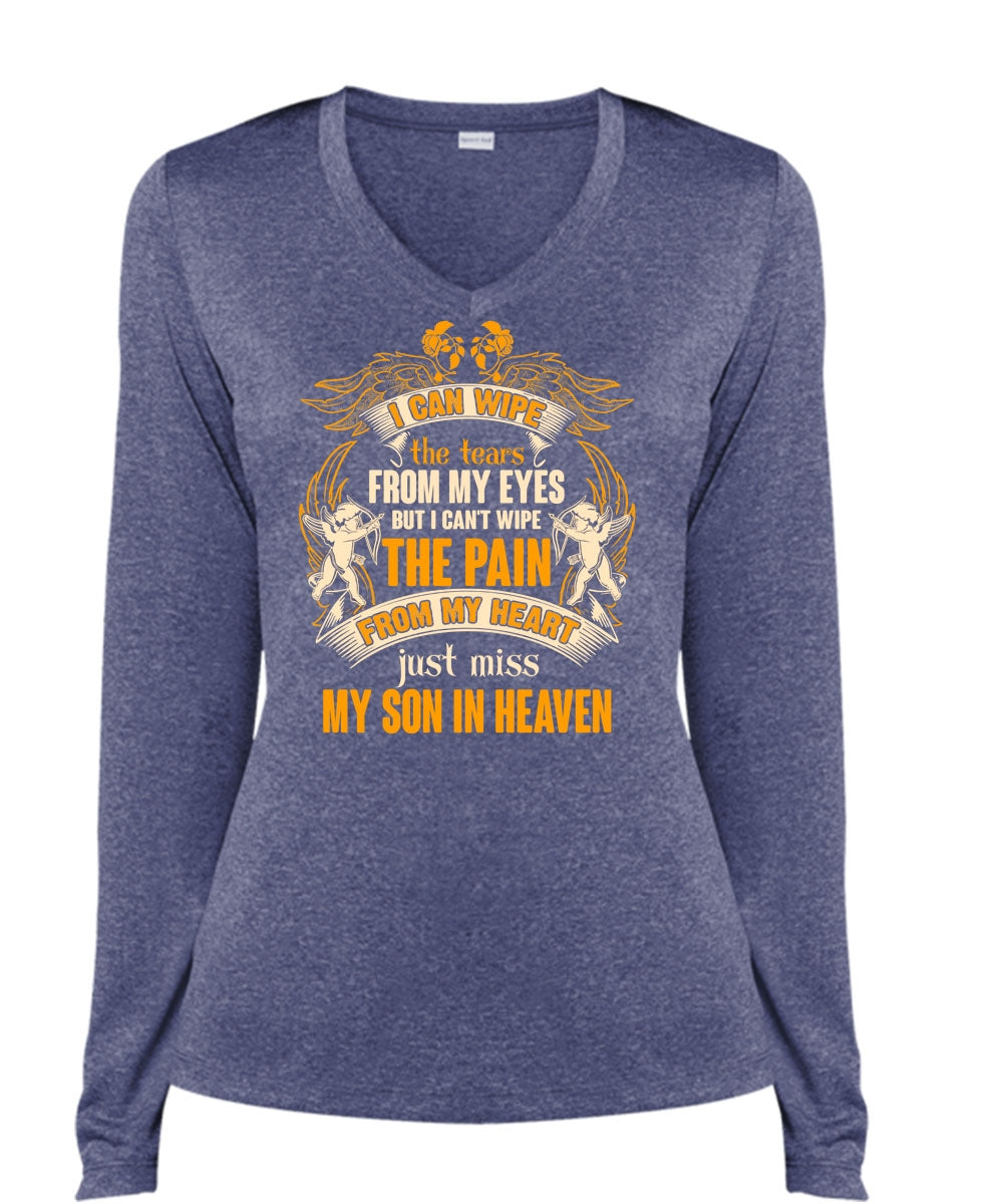 My Son In Heaven T Shirt, My Eyes T Shirt, Cool Shirt (Ladies LS Heather V-Neck)