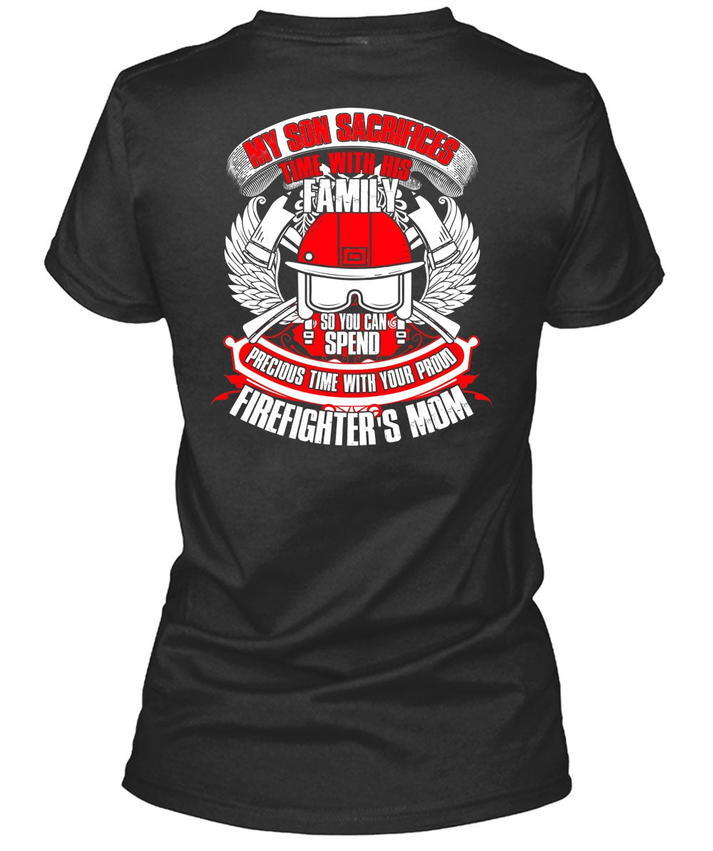 My Son Sacrifices Time T Shirt, Firefighter's Mom T Shirt