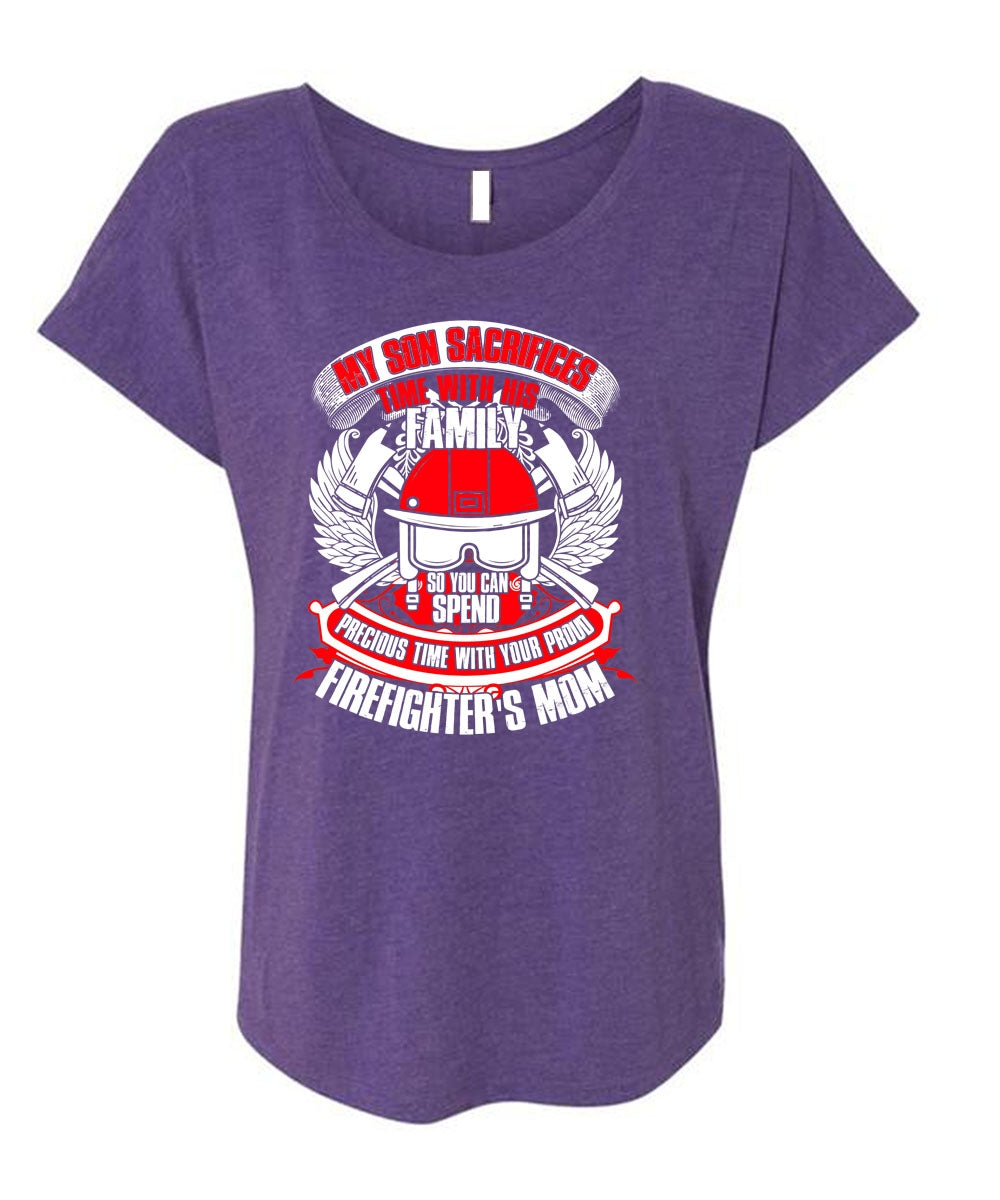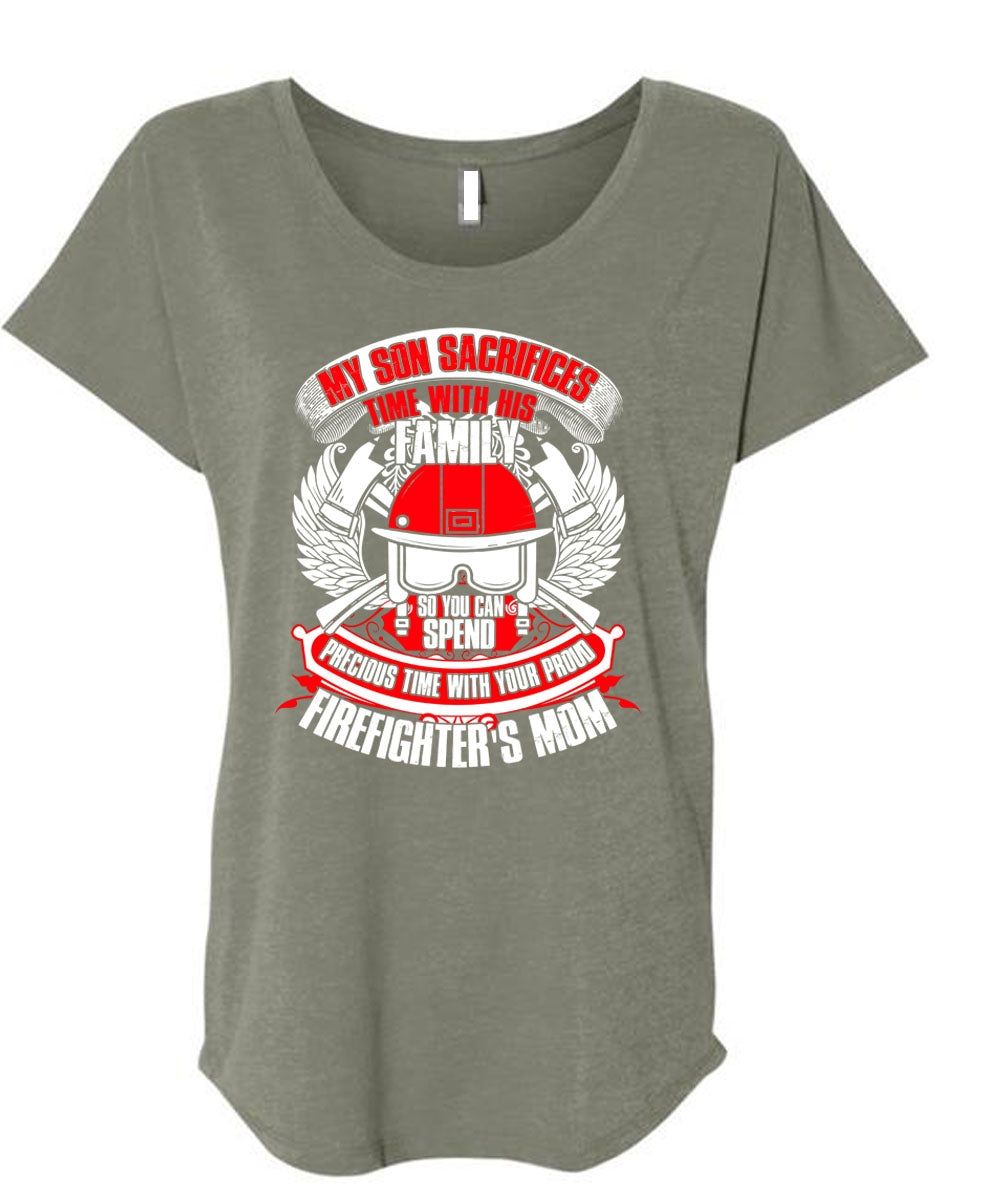 My Son Sacrifices Time T Shirt, Firefighter's Mom T Shirt, Cool Shirt (Ladies' Triblend Dolman Sleeve)