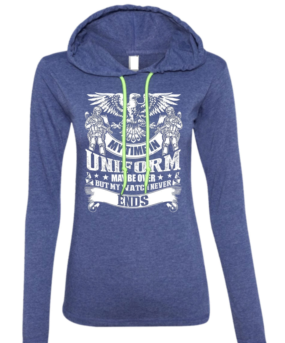 My Time In Uniform T Shirt, Being A Veteran T Shirt (Anvil Ladies Ringspun Hooded)