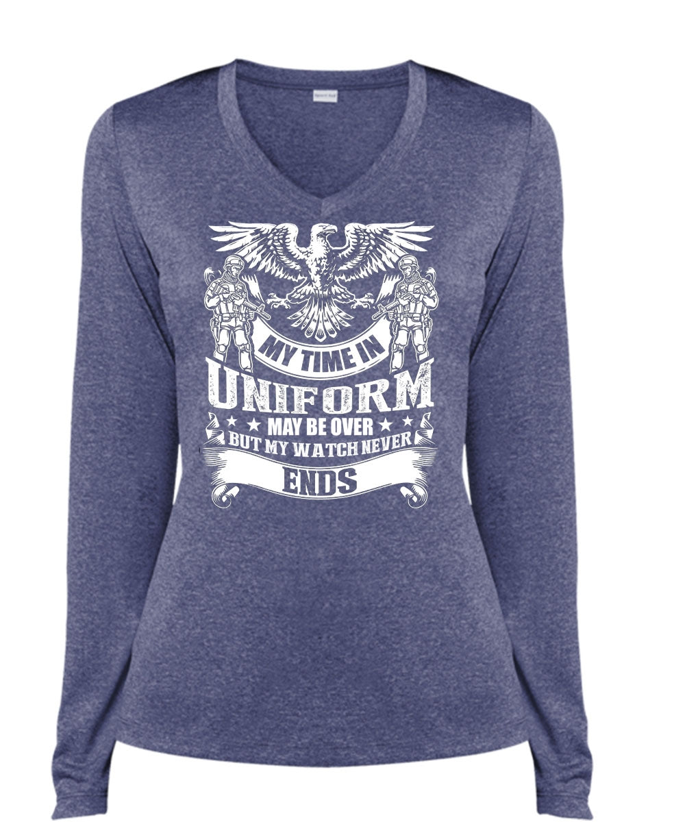 My Time In Uniform T Shirt, Being A Veteran T Shirt, Cool Shirt (Ladies LS Heather V-Neck)