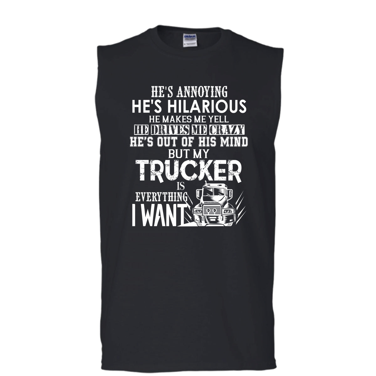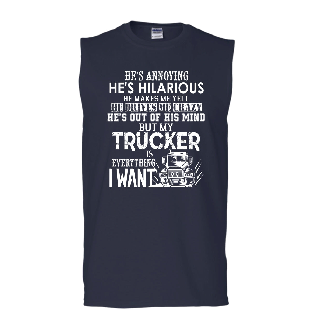 My Trucker Is Everything T Shirt, I Love My Trucker Tank Top (Men's Cotton Sleeveless)