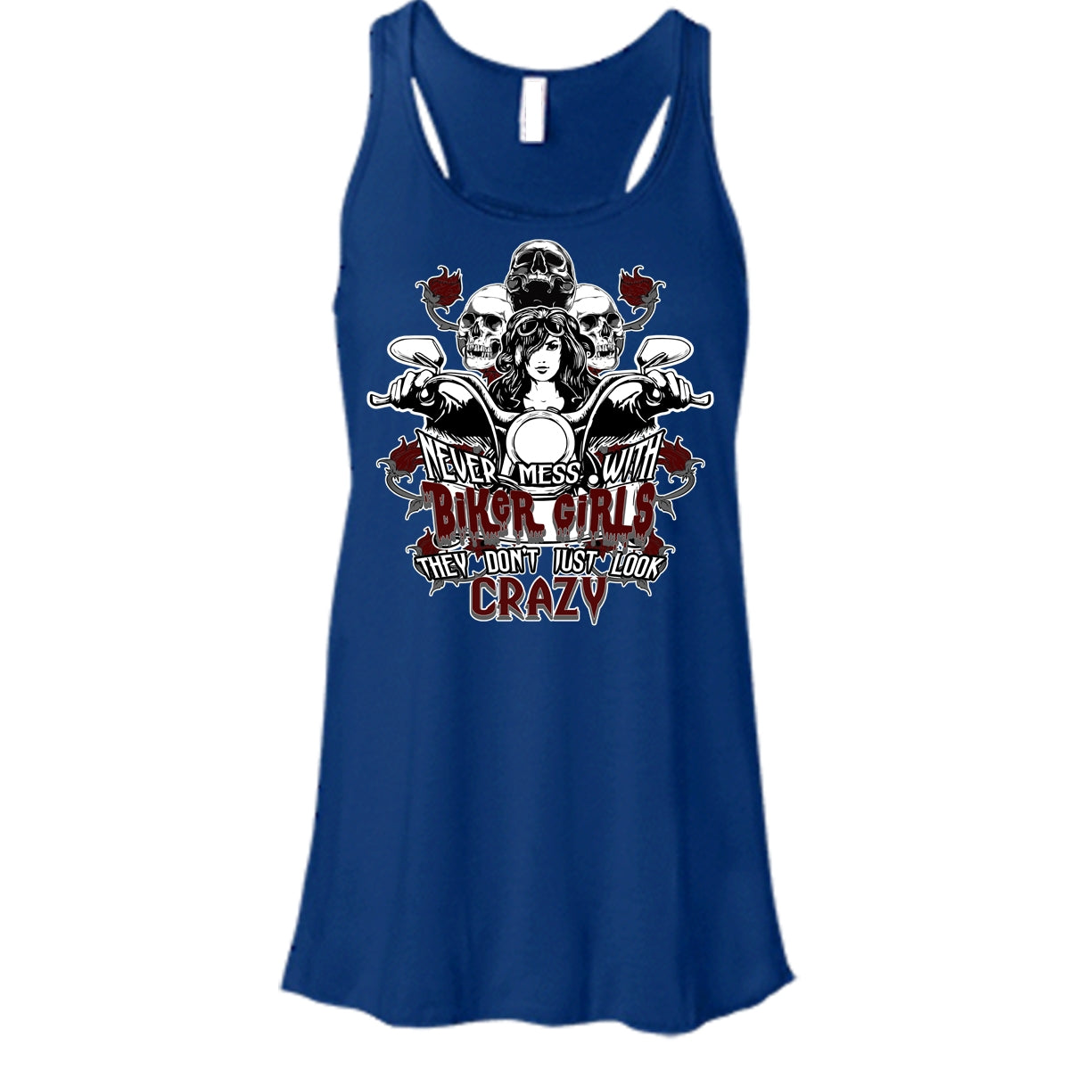 Never Mess With Biker Girls T Shirt, They Don't Just Look Crazy T Shirt, Cool T Shirt