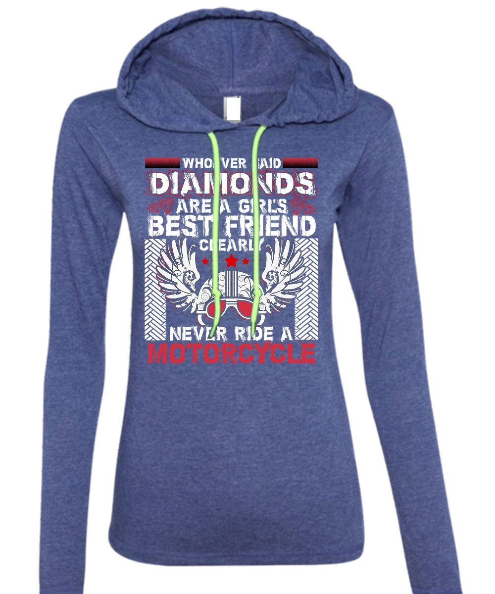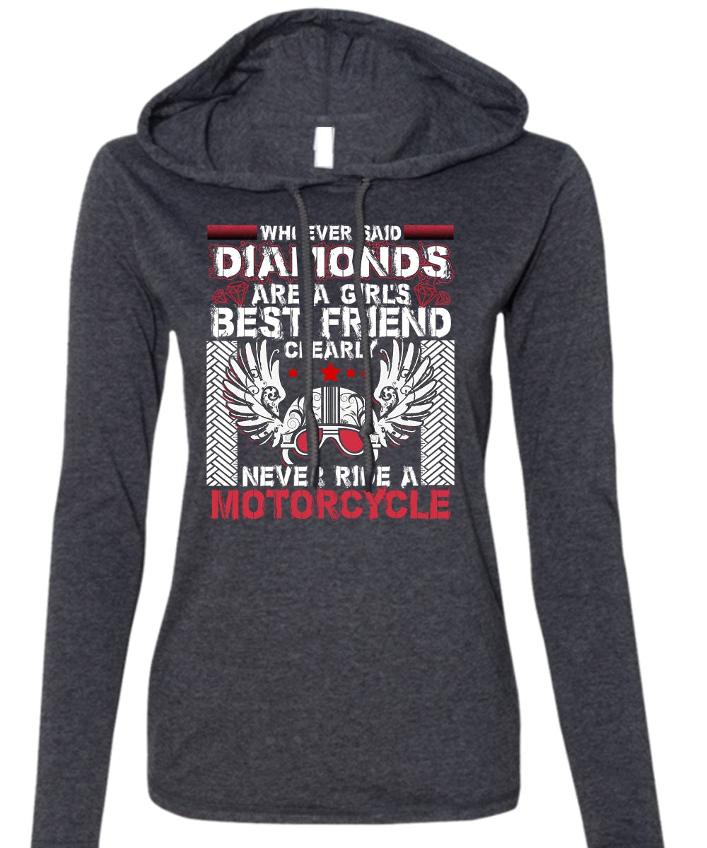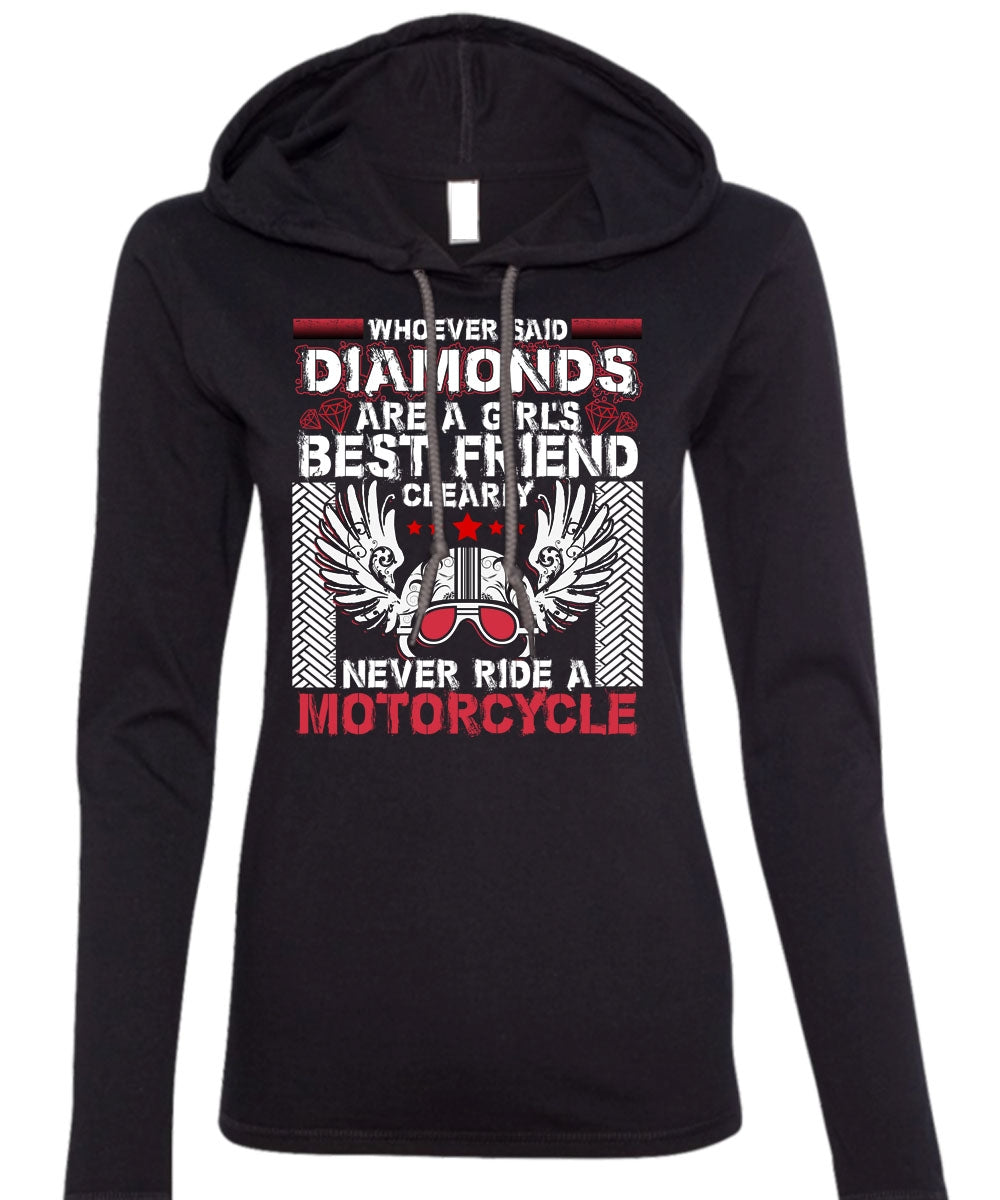 Never Ride A Motorcycle T Shirt, Diamonds Are A Girl's Best Friend T Shirt (Anvil Ladies Ringspun Hooded)