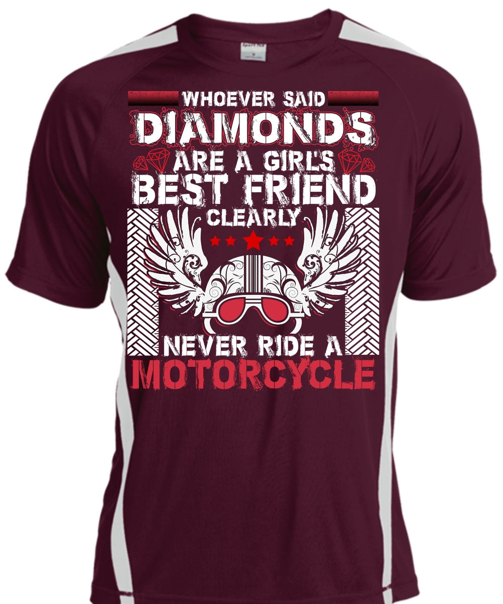 Never Ride A Motorcycle T Shirt, Diamonds Are A Girl's Best Friend T Shirt, Cool Shirt