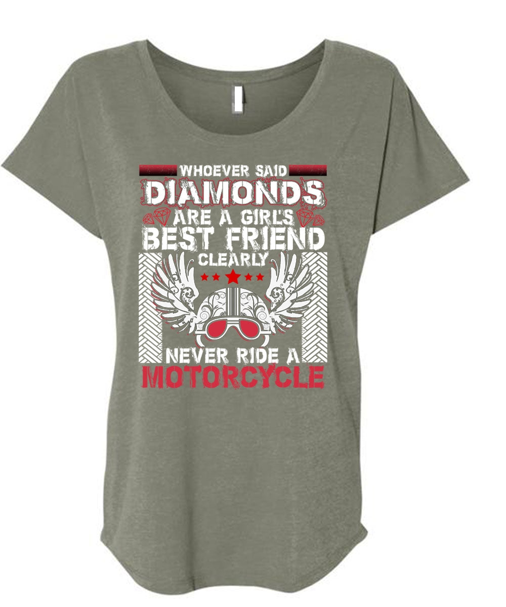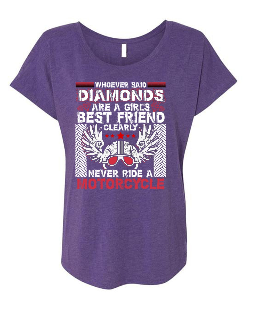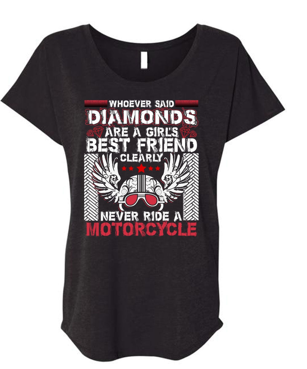 Never Ride A Motorcycle T Shirt, Diamonds Are A Girl's Best Friend T Shirt, Cool Shirt (Ladies' Triblend Dolman Sleeve)