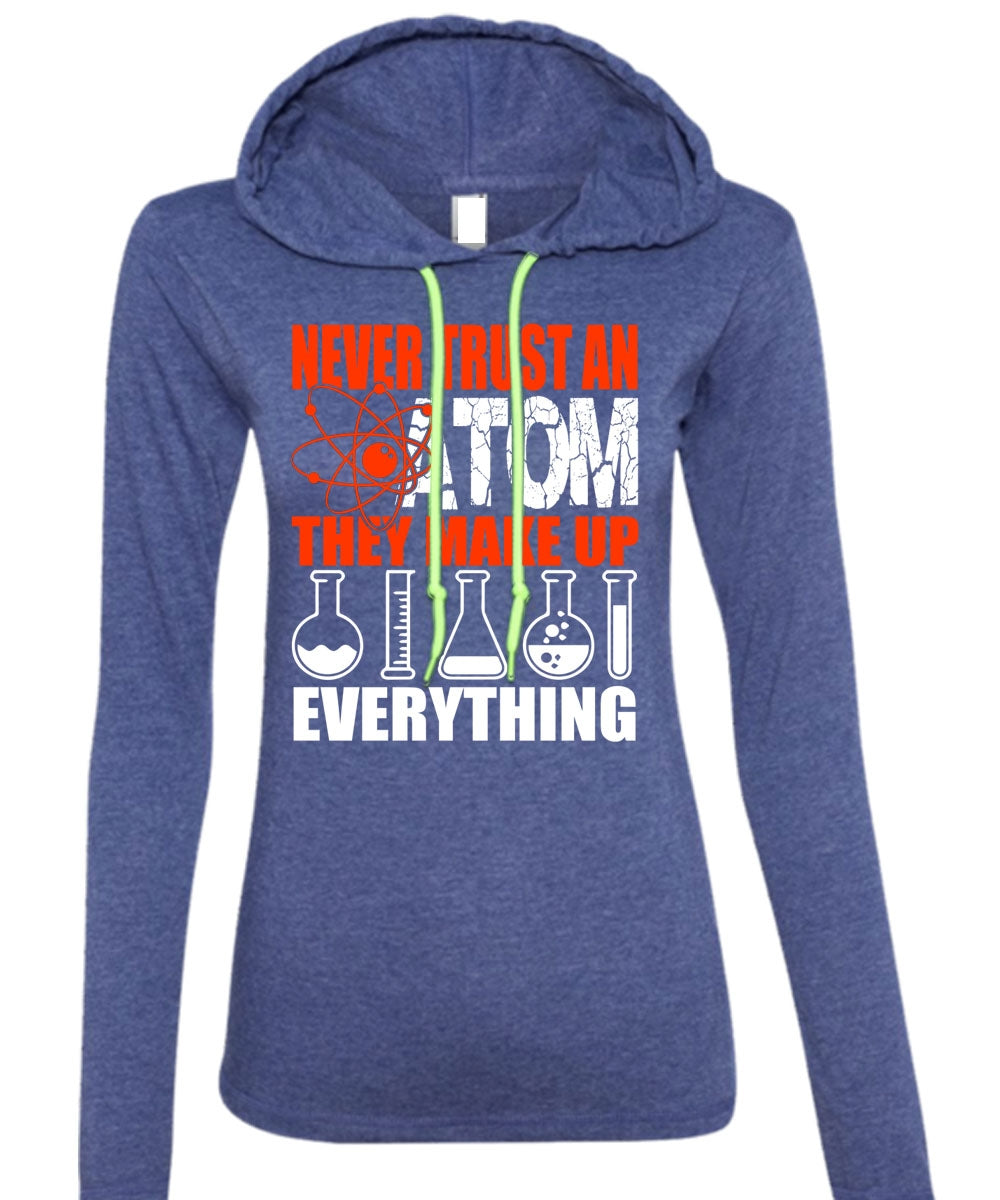 Never Trust An Atom T Shirt, Being A Scientist T Shirt (Anvil Ladies Ringspun Hooded)