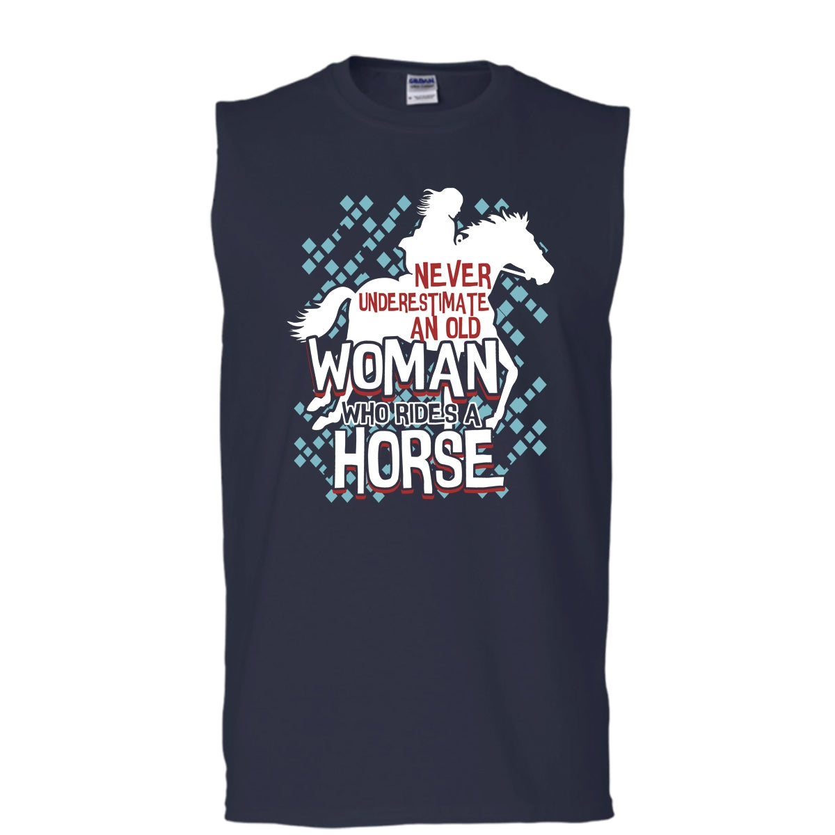 Never Underestimate T Shirt, An Old Man Who Rides A Horse T Shirt, Cool T Shirt (Men's Cotton Sleeveless)