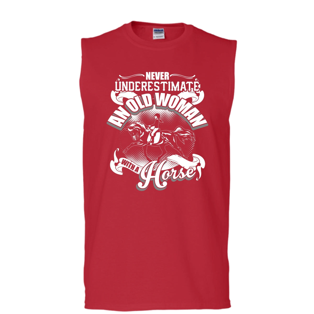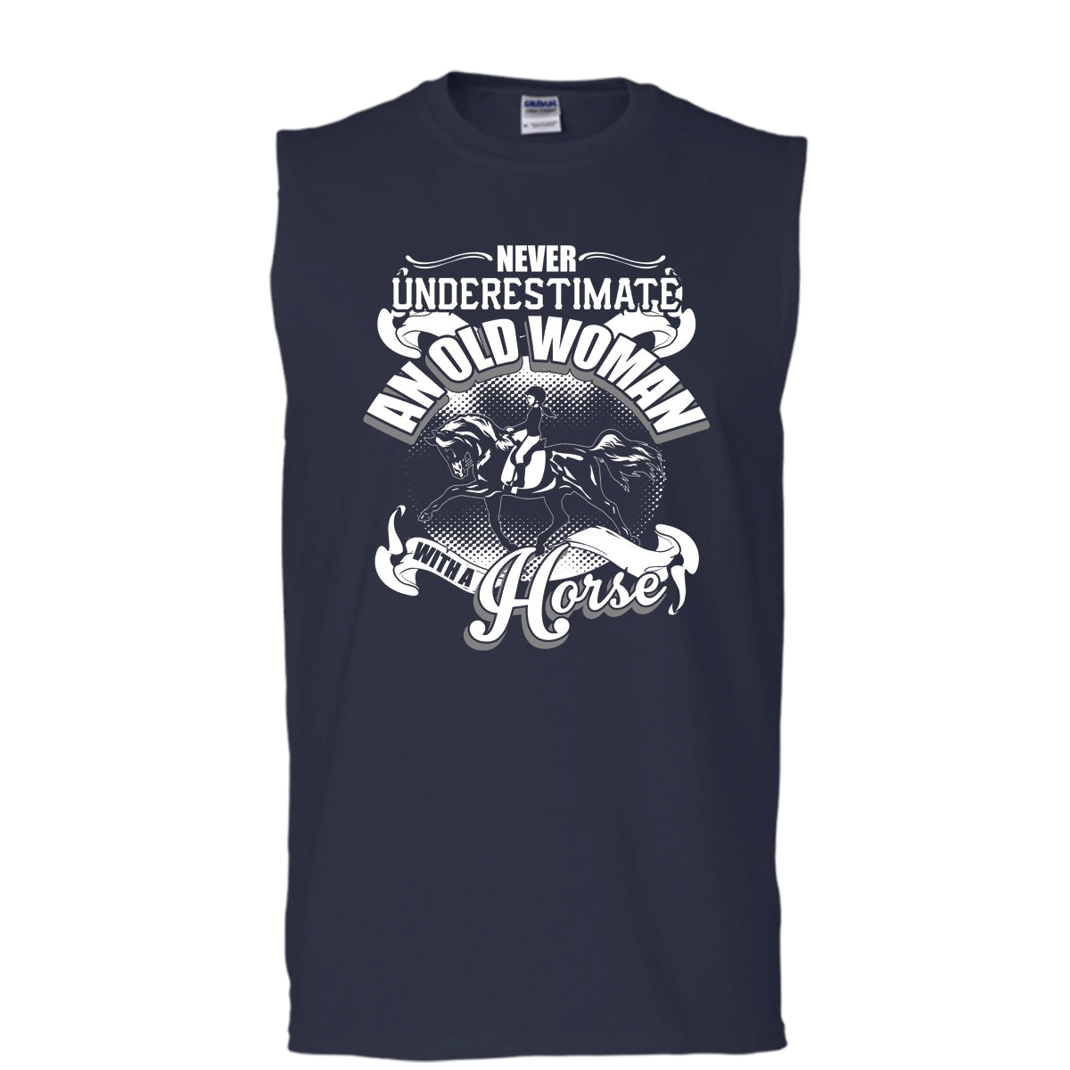 Never Underestimate T Shirt, An Old Man With A Horse Tank Top (Men's Cotton Sleeveless)