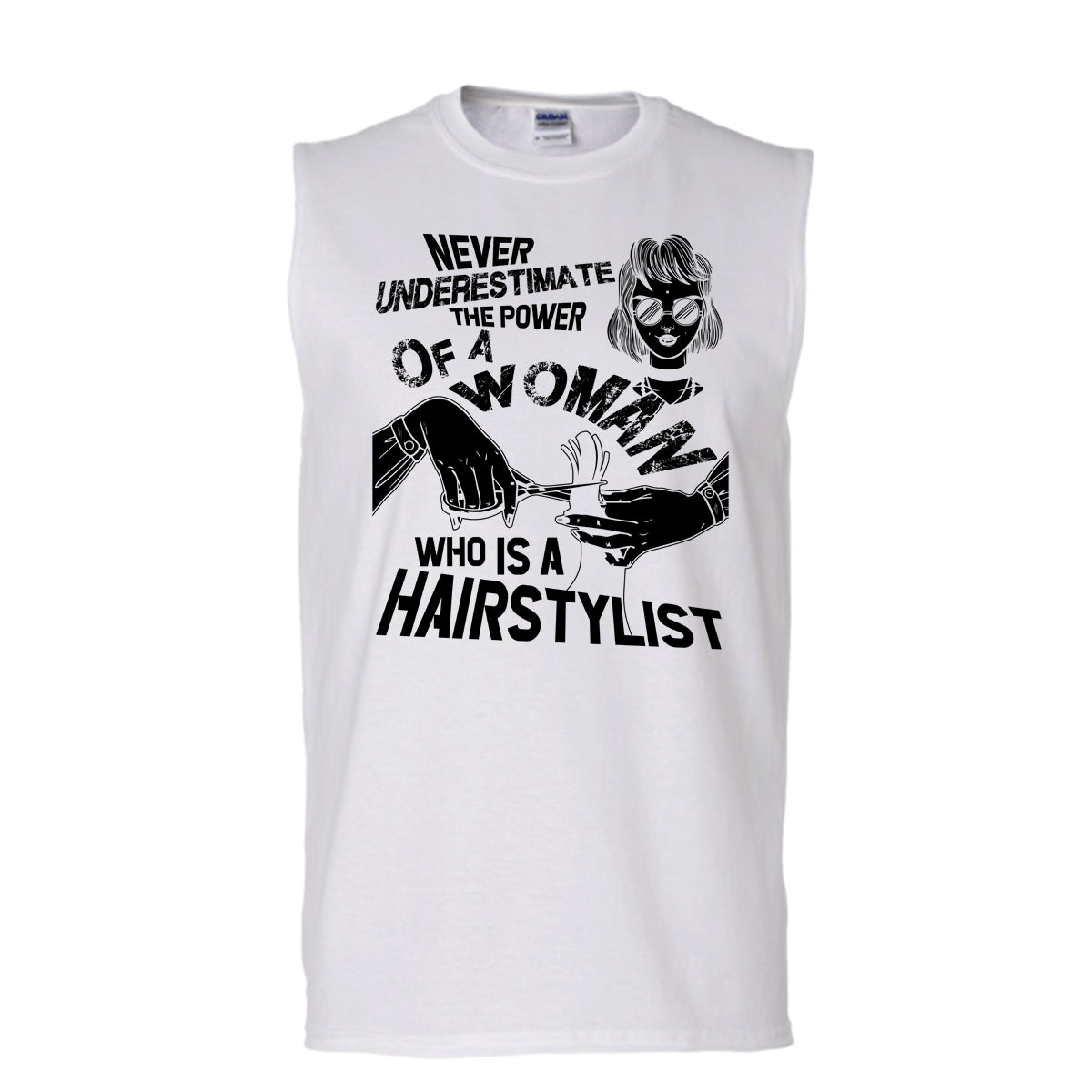 Never Underestimate T Shirt, Coolest Hair Stylist Tank Top (Men's Cotton Sleeveless)